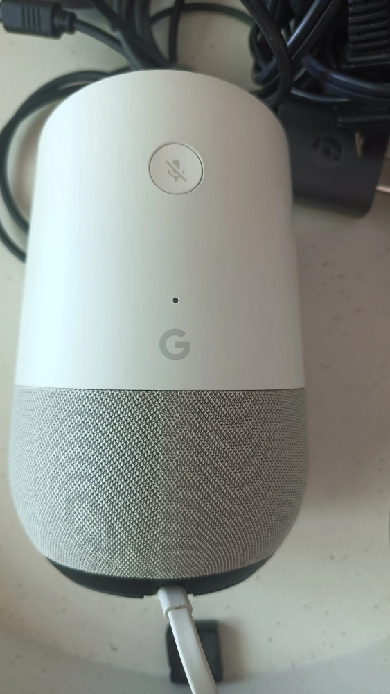 Selling a Google Home smart speaker. It comes with the AC adapter. Great for playing music, setting alarms, and controlling smart home devices with your voice. It's in great working condition. $50 I also have a new one, new in box if you are interested - $90