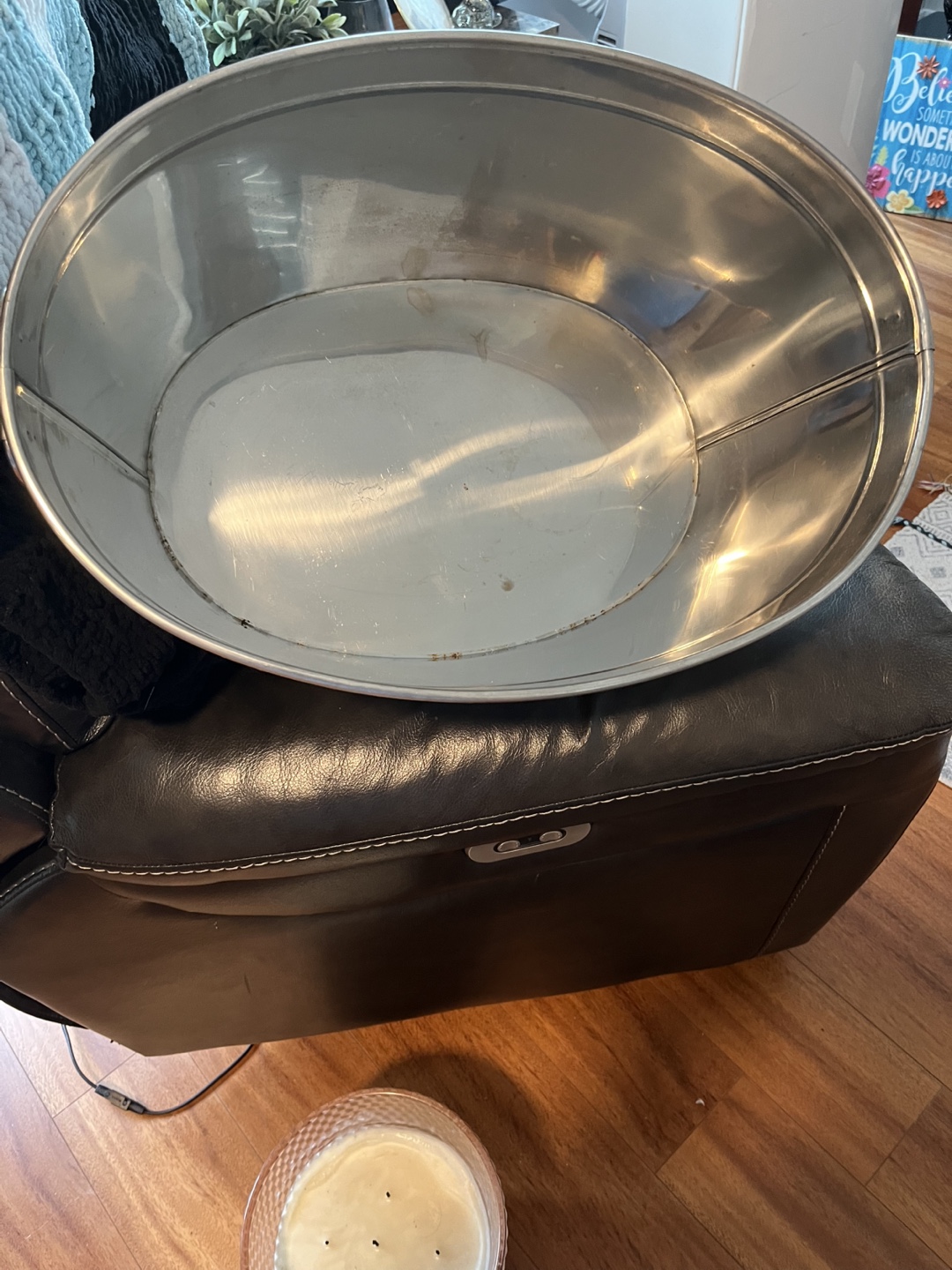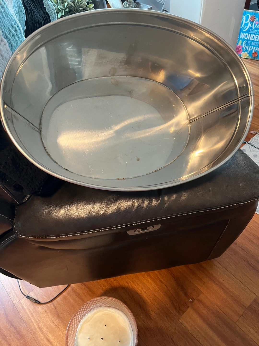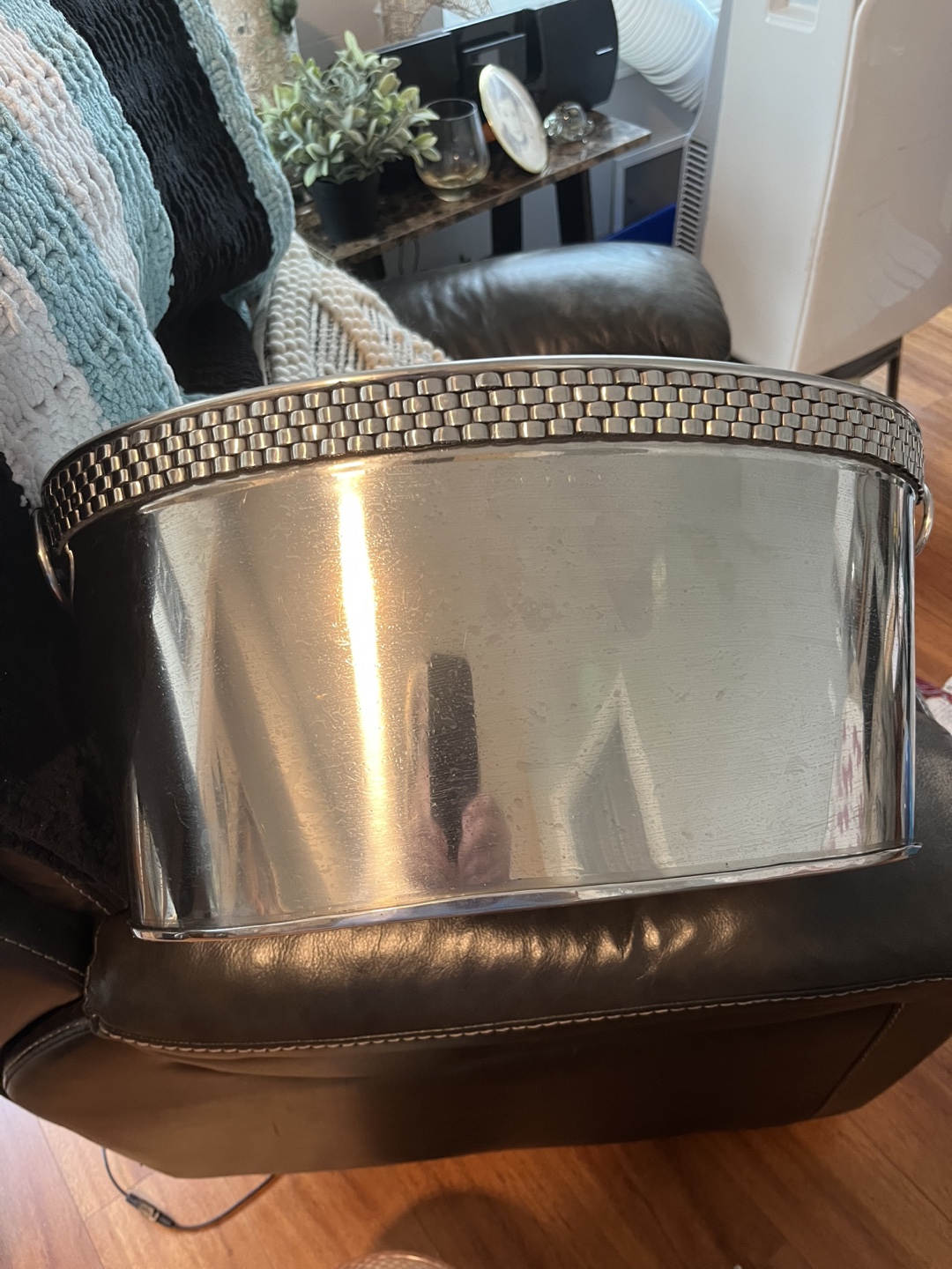 Selling a nice oval silver metal tub. It could be used for drinks at a party or as a planter. It's in good condition and ready for a new home