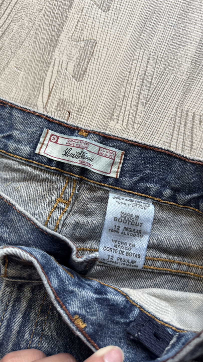 Levi Strauss Signature jeans in a size 12 regular. They are bootcut and made of 100% cotton. These jeans are in good condition and ready for a new home