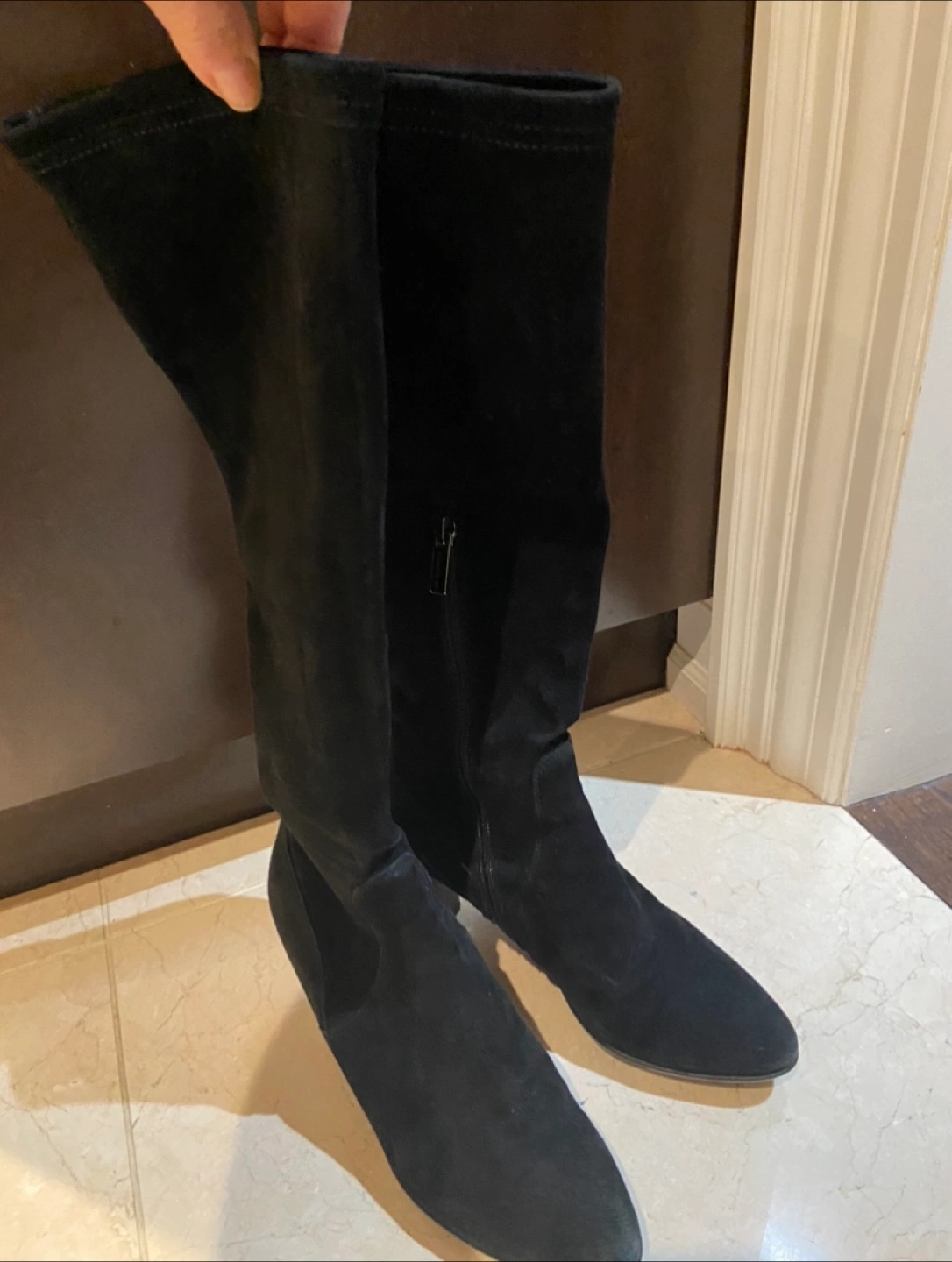 Selling a pair of Aquatalia over-the-knee boots in black suede. These are a size 7 and in great condition. They are super stylish and perfect for the cooler weather! Only worn a couple times.