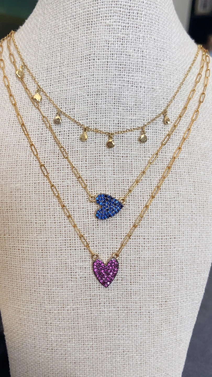 Layered Gold Tone Heart Pendant Necklace. Blue or pink.