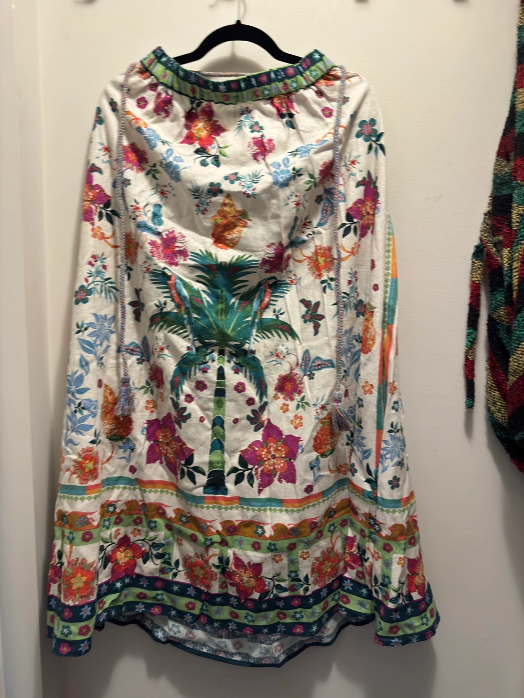 Never worn—-This is a Rachel Zoe skirt in size XS. ( fits like a small or medium) It features a colourful floral print and a comfortable elastic waistband. Perfect for adding a touch of bohemian style to your wardrobe!