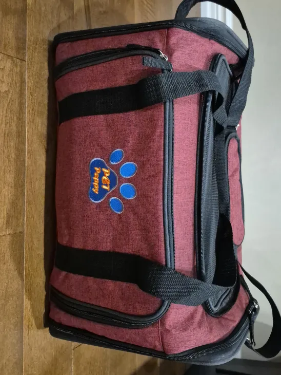 Selling a burgundy Pet Peppy pet carrier! It's in great shape and ready for your furry friend. The carrier features mesh windows for ventilation and a soft, cozy interior for your pet's comfort. Perfect for travel or vet visits!
