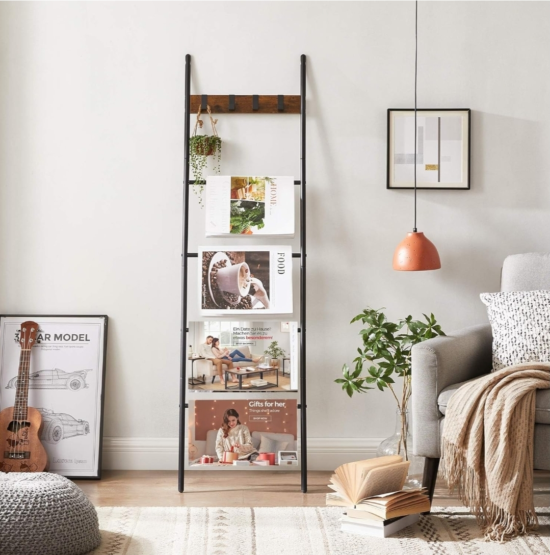 Bring style and function into your space with this VASAGLE 5-Tier Blanket Ladder Shelf.