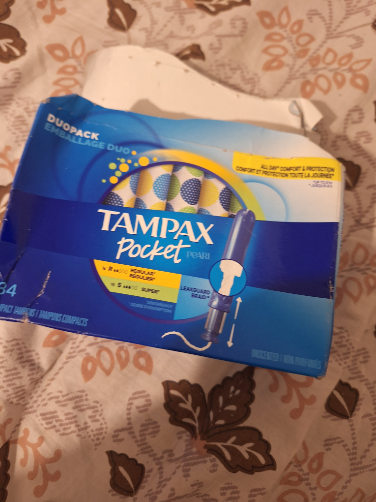 Selling a box of Tampax Pocket Pearl tampons. It's a Duopack with both Regular and Super absorbencies. Great for all-day comfort and protection!