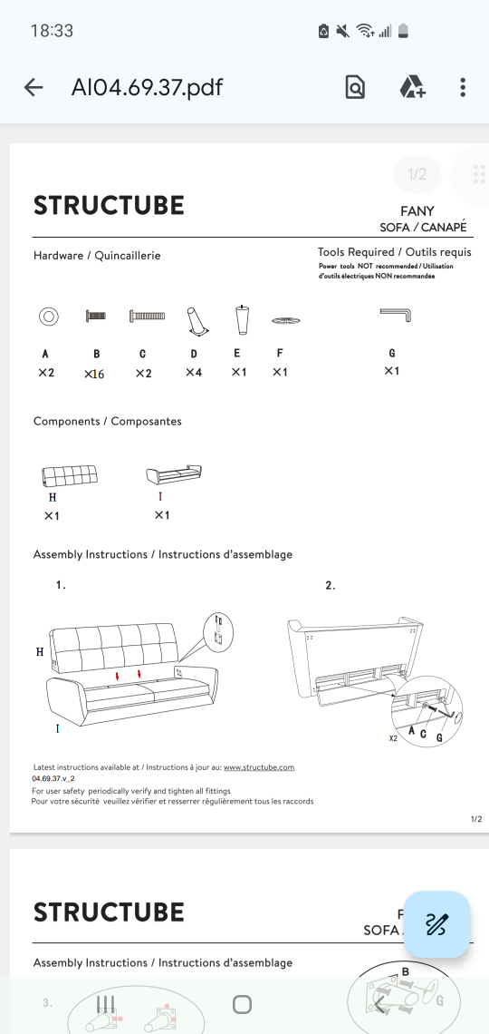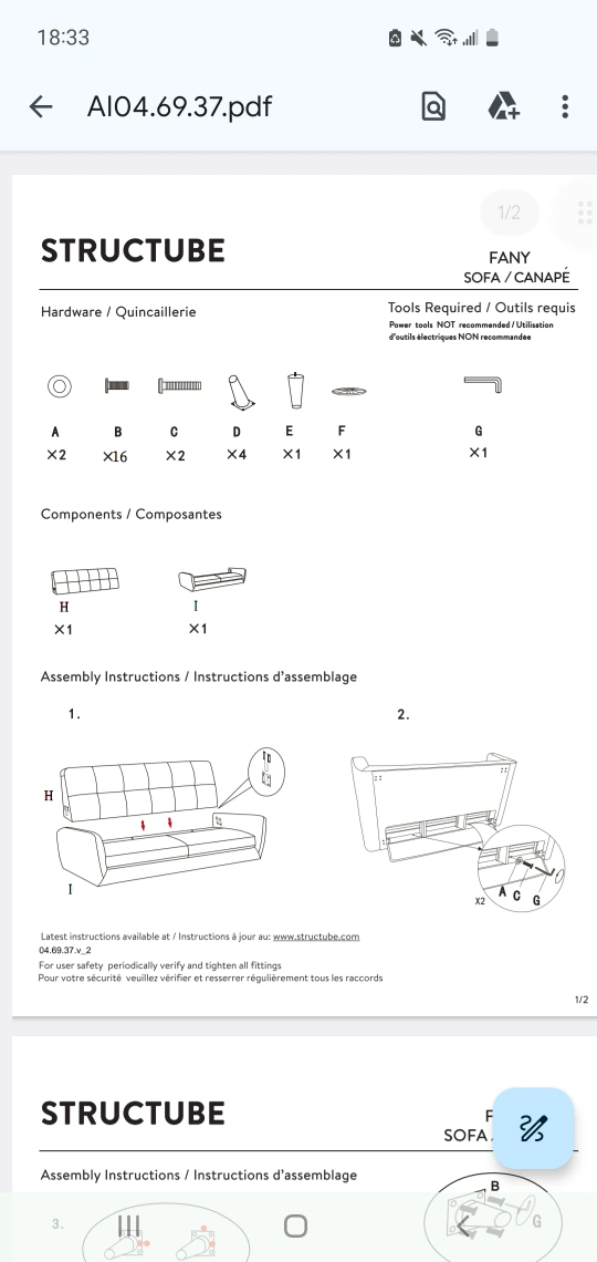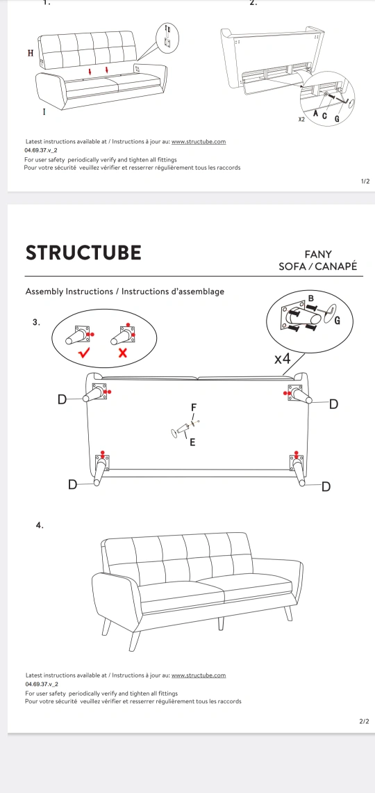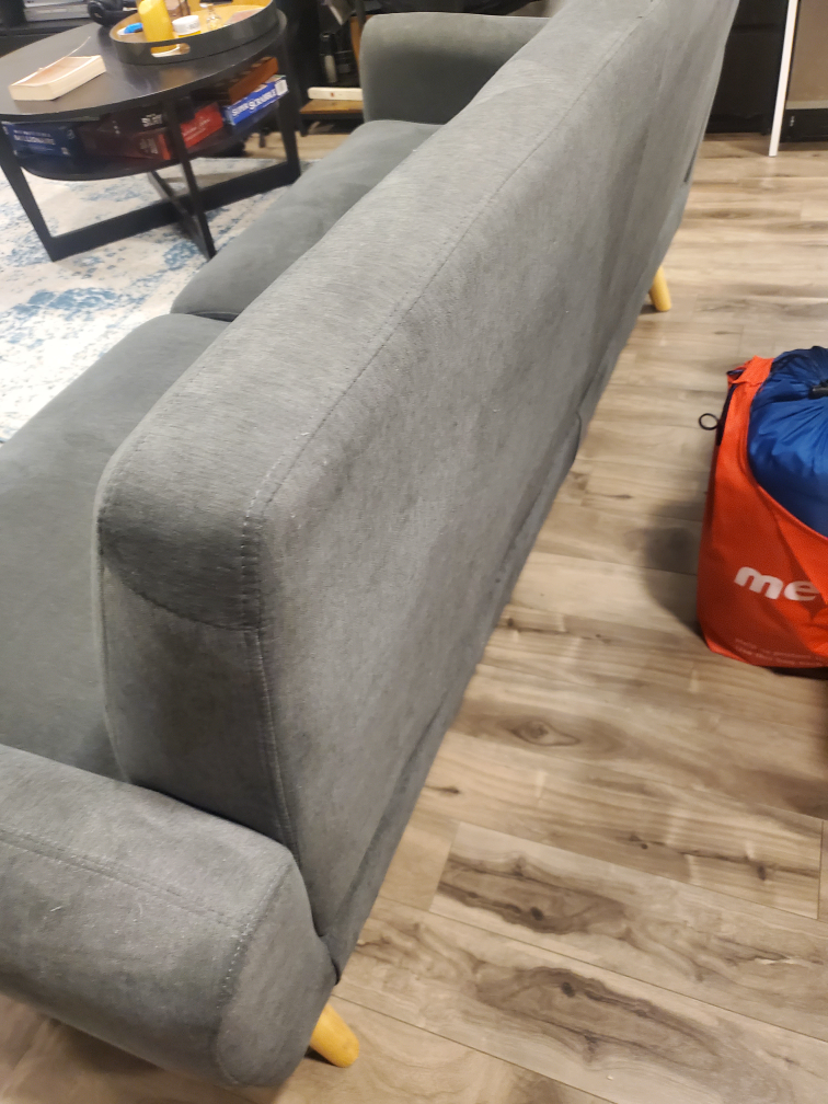 Note: repaired L-foot by screwing it in straight. Original design had the feet on an angle and was not as supportive. Couch feels sturdier post repair.