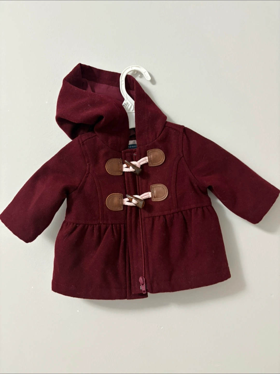 Here's a cute burgundy hooded jacket from Old Navy! It features a toggle closure and a cozy hood, perfect for keeping your little one warm on chilly days