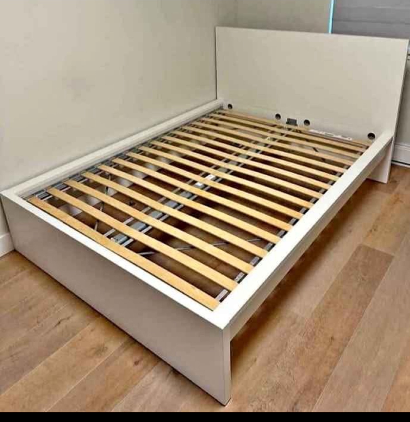Selling an Ikea Malm queen size bed frame in white. It's in great shape and ready for a new home! Perfect for a minimalist bedroom setup. Used for only 9 months