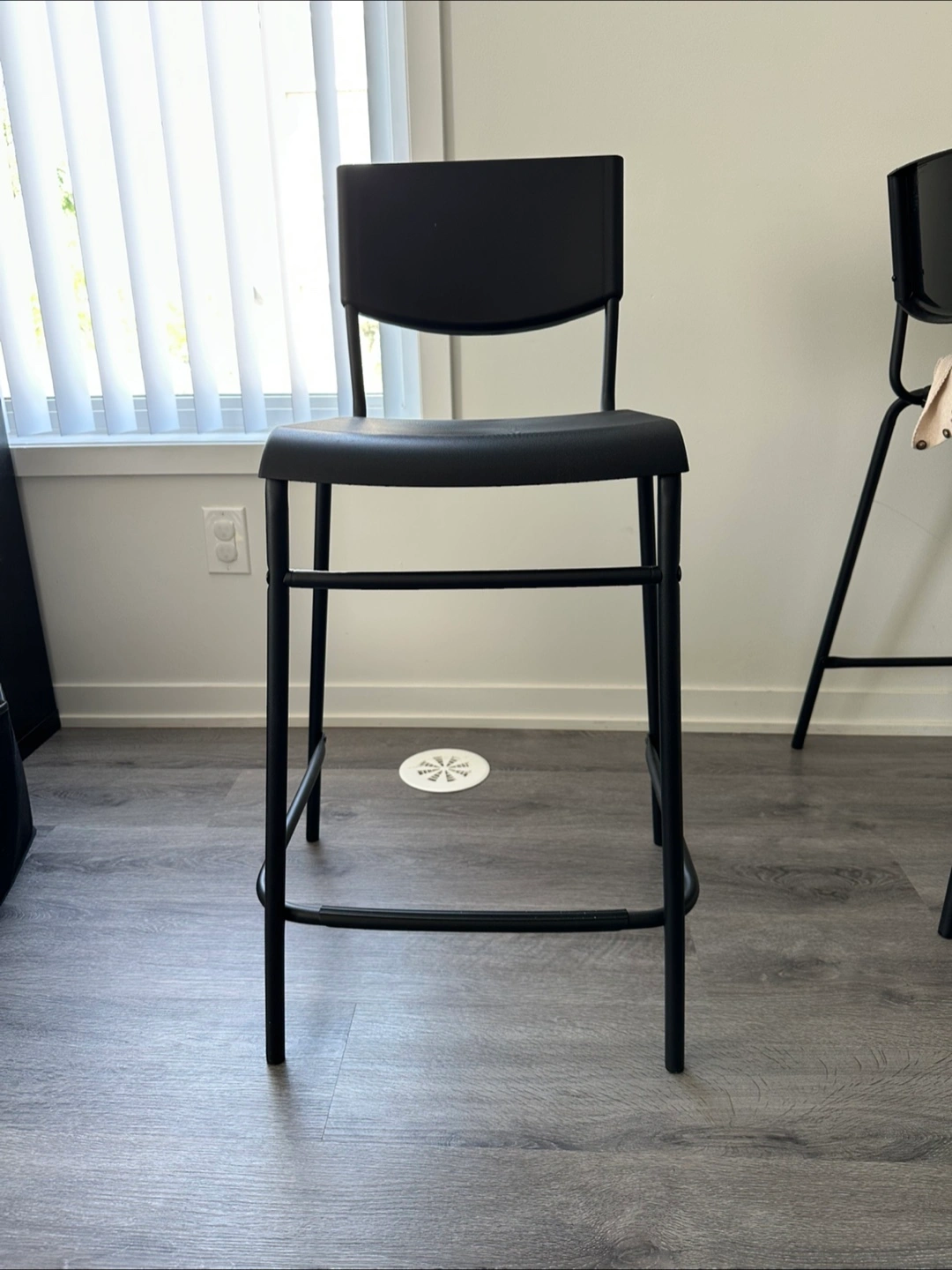Selling a sleek black bar stool! It's in great shape and would look perfect in any kitchen or bar area. It's a sturdy and stylish piece of furniture