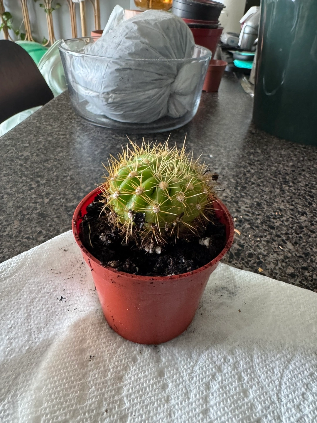 A cute little cactus in a small pot, perfect for adding a touch of green to your space! It's easy to care for and would look great on a windowsill or desk