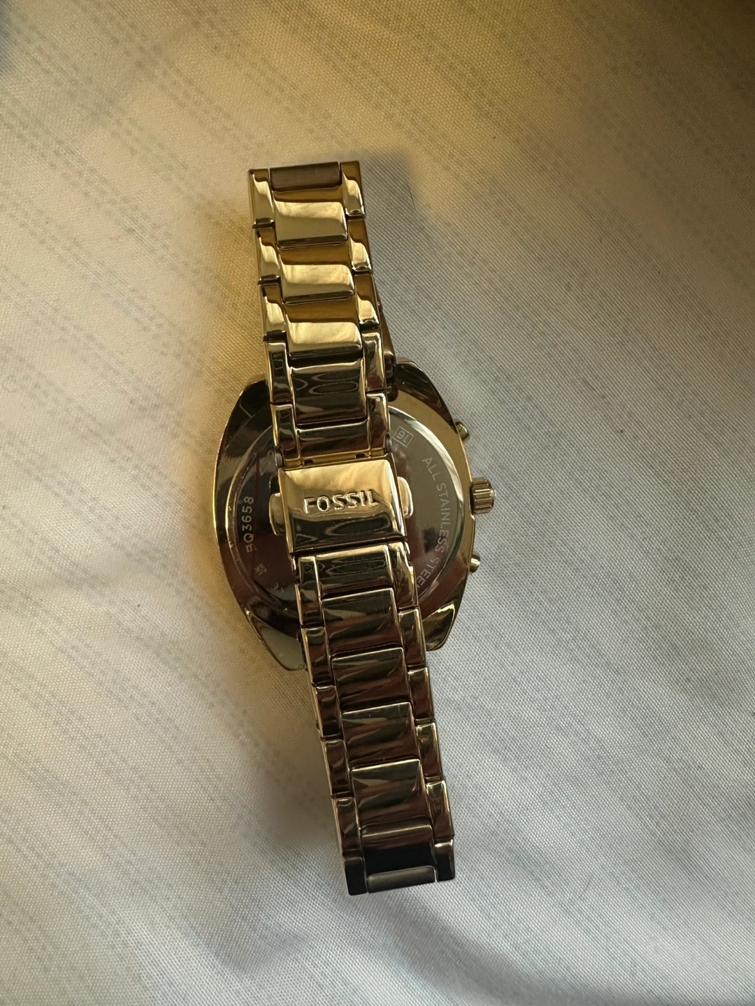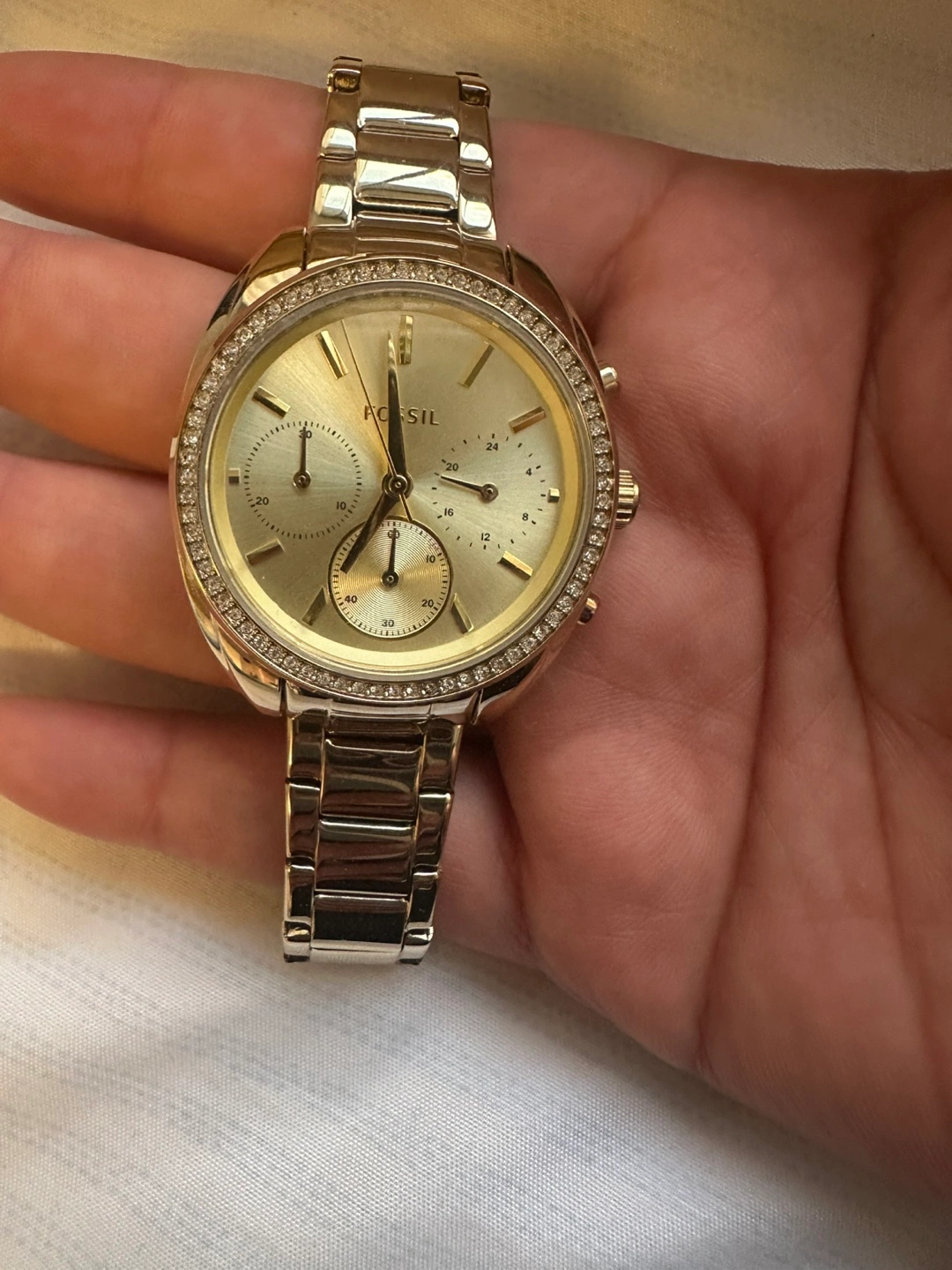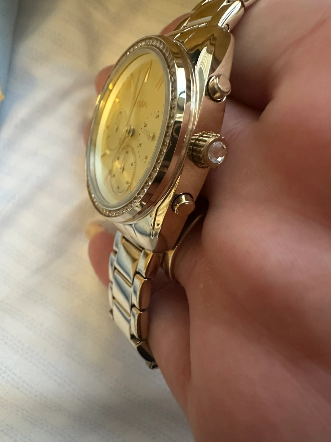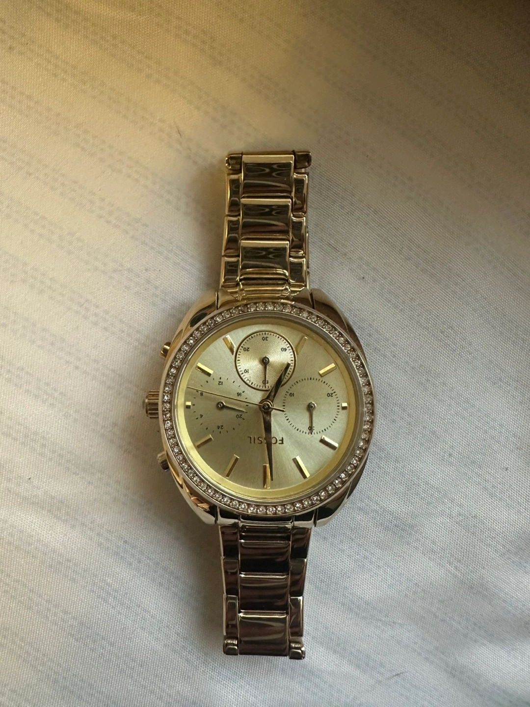 Selling a beautiful gold Fossil women's watch. It's in great condition and has a lovely sparkle around the face. Perfect for adding a touch of elegance to any outfit! $150 obo