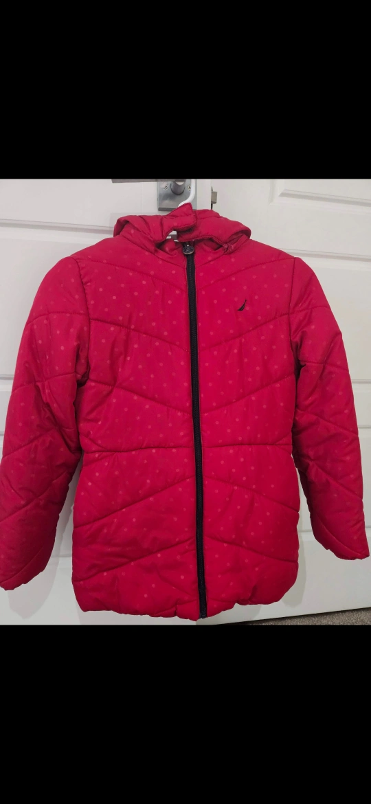 Nautica Red puffer jacket in great condition. It's size 10 and features a hood. Perfect for keeping warm on chilly days.