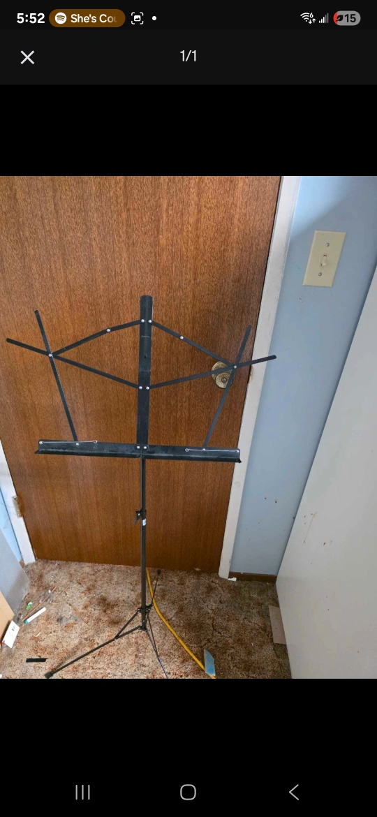 Selling a black music sheet stand. It's in good condition and ready for a new home. Perfect for musicians of all levels!