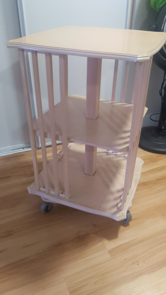 Will deliver *within Edmonton proper*. Please I want my floor space. Selling a cute little side table with three tiers! It's got wheels so it's easy to move around. Perfect for a small space beside a bed or couch. The wheels are non-marking and roll nicely (honestly easier with some weight on the shelves).