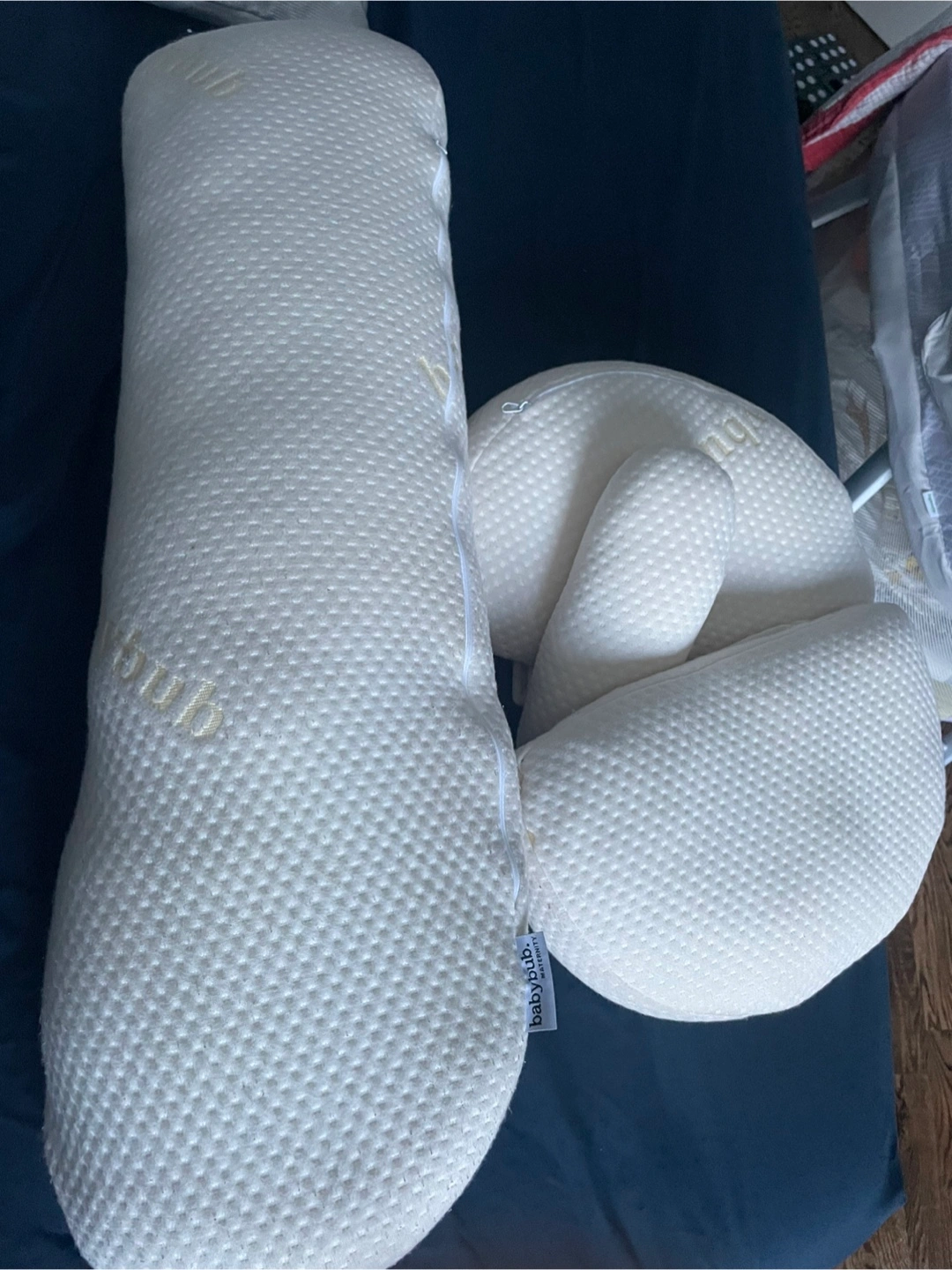Selling a babybub pregnancy pillow in great condition! It's designed to provide support and comfort during pregnancy. The pillow is made from a soft, textured material and features a unique shape to help alleviate discomfort. Perfect for expecting mothers!