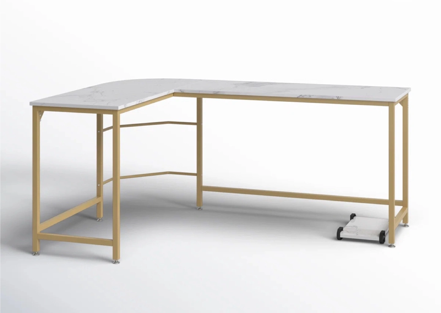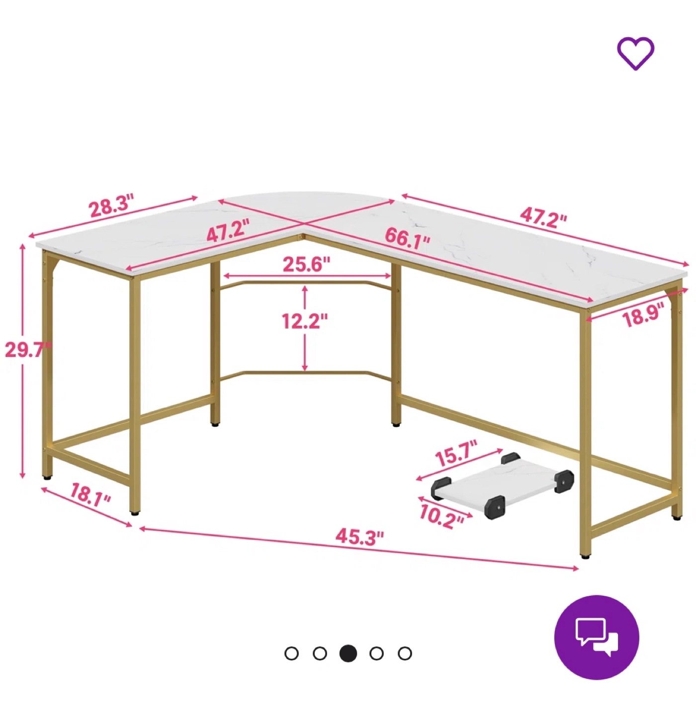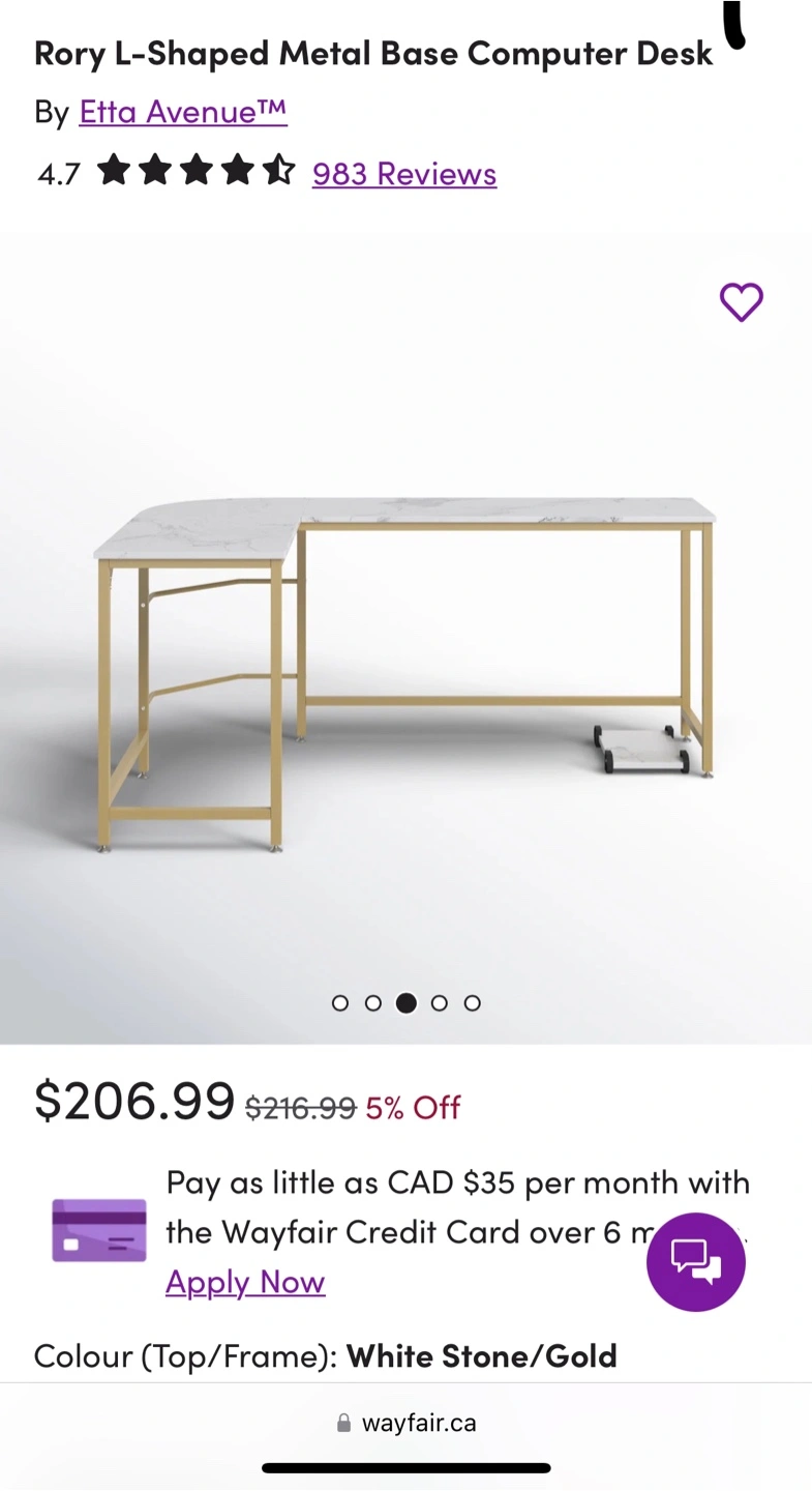 202Selling an Etta Avenue Rory L-Shaped Metal Base Computer Desk in White colour and gold legs . It is disassembled in its original box with all components and instructions. Also has a CPU storage spot. The dimensions are 28.3" x 47.2" x 66.1" x 29.7". Available for delivery and pickup within Durham region.