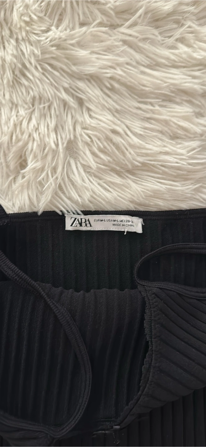 Selling a Zara black ribbed tank top in size M. It's in great condition and would be a lovely addition to your wardrobe! The material feels soft and comfortable, perfect for everyday wear