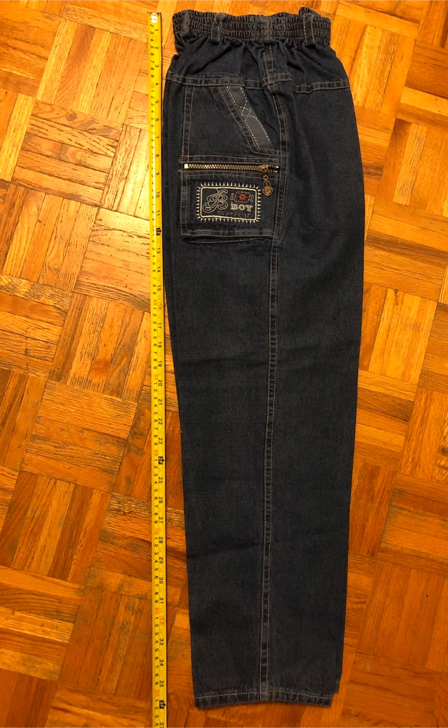 These are a new pair of boys' jeans. They have a sporty design on the pocket and an elastic waistband for a comfy and easy fit. Perfect for your little one! Pickup from Christie station between 4:30pm and 8:00pm during the week days