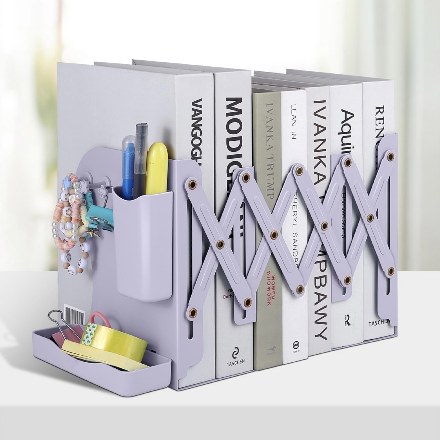 Includes 1 pen holder, 2 file organizer/ bookshelf and a photo frame.