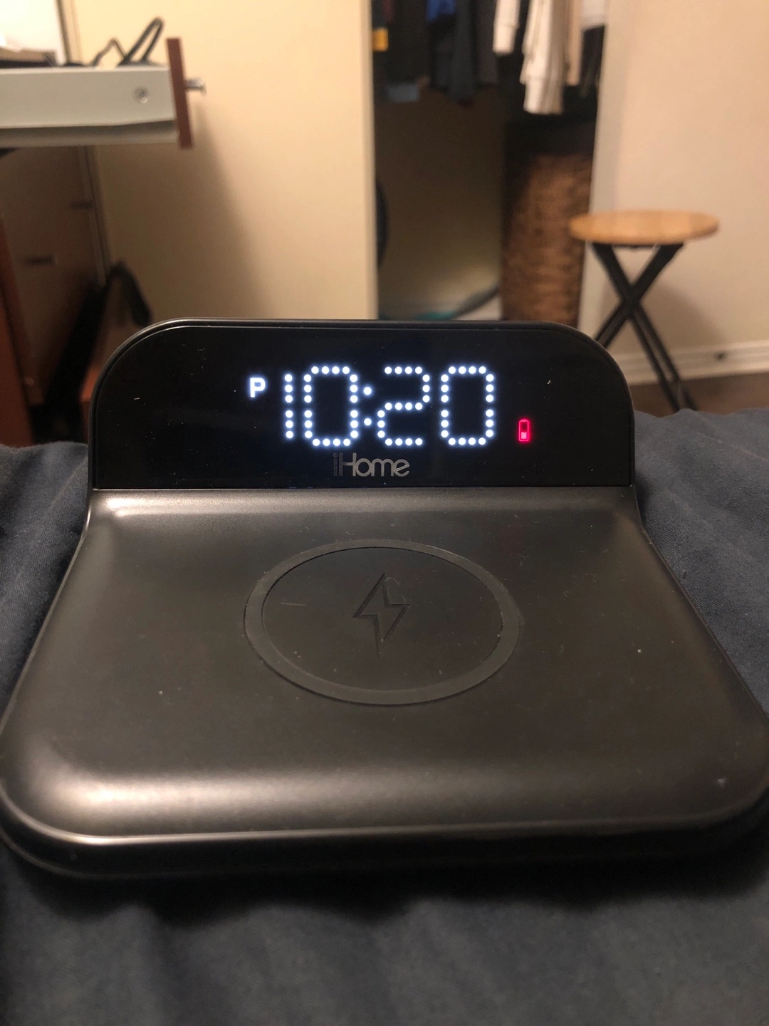 37Selling an iHome alarm clock with wireless charging! It's in great condition and perfect for your bedside table. It displays the time clearly and charges your phone at the same time. Comes with Charger