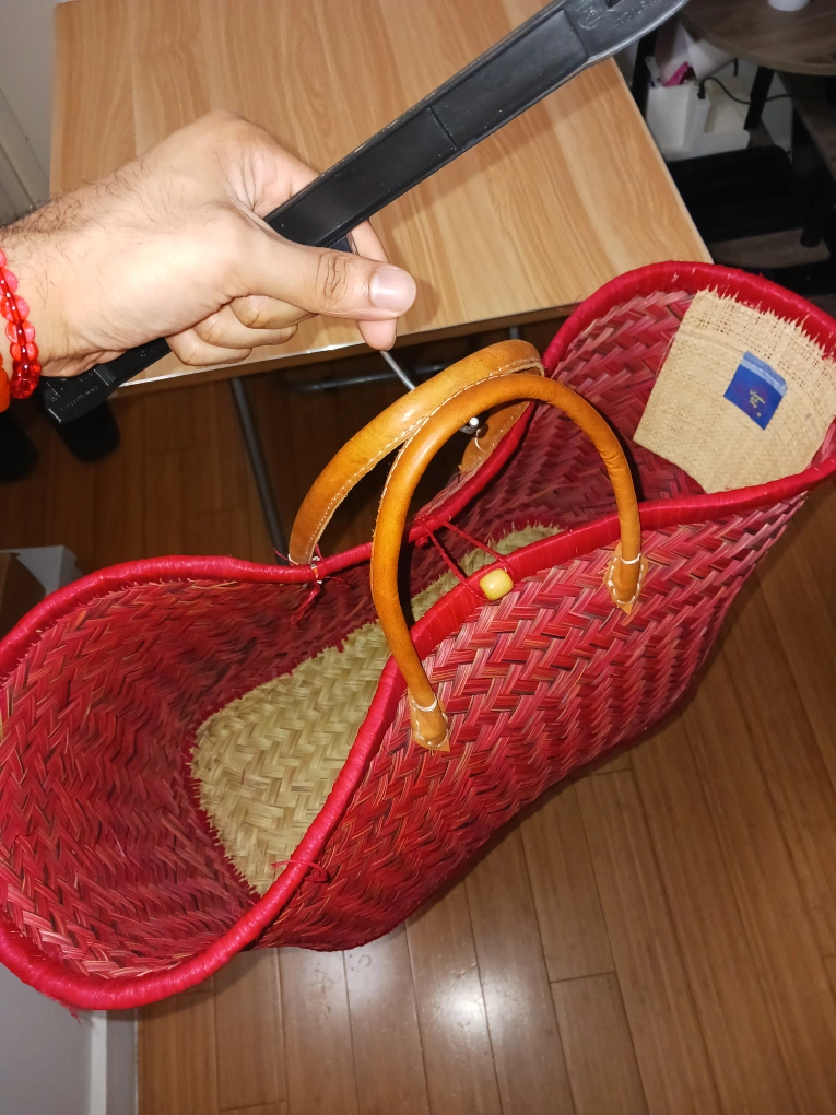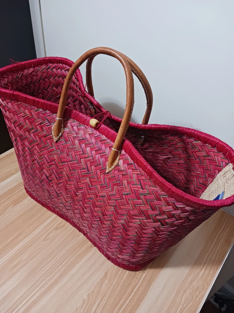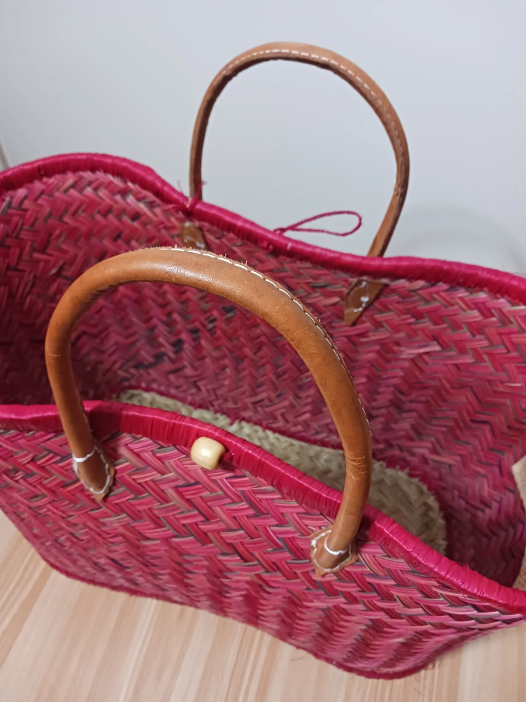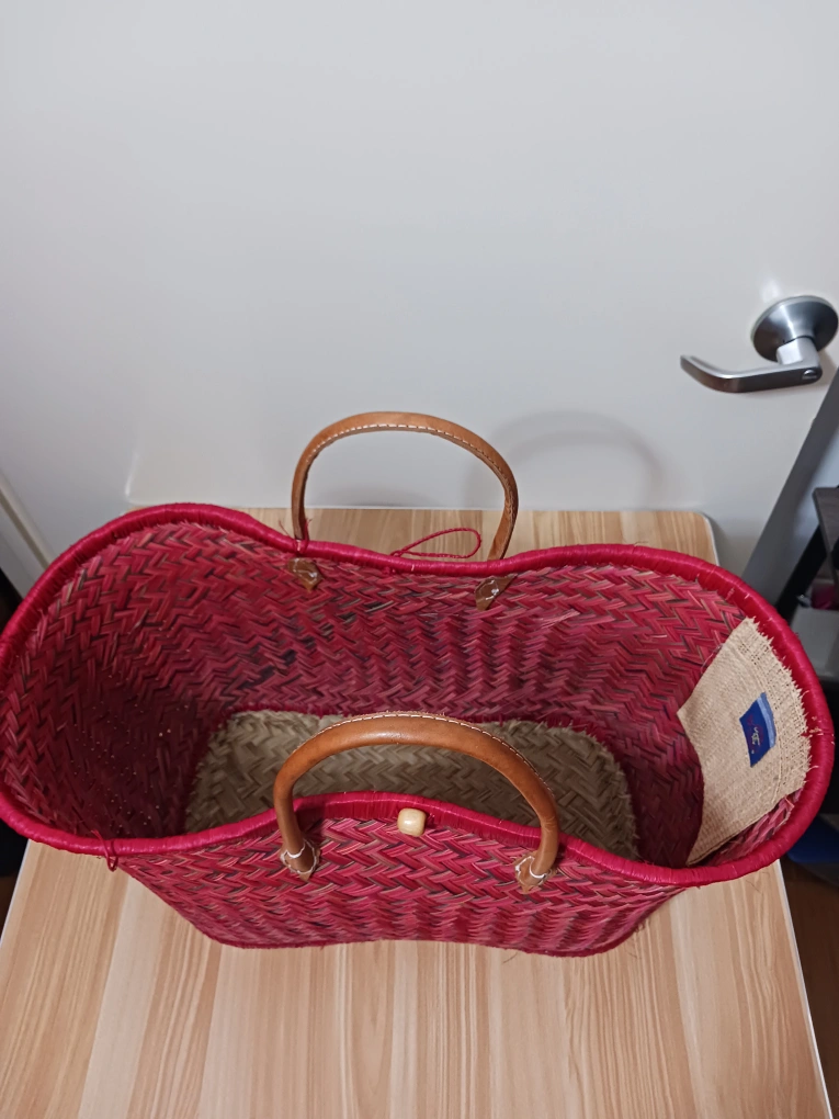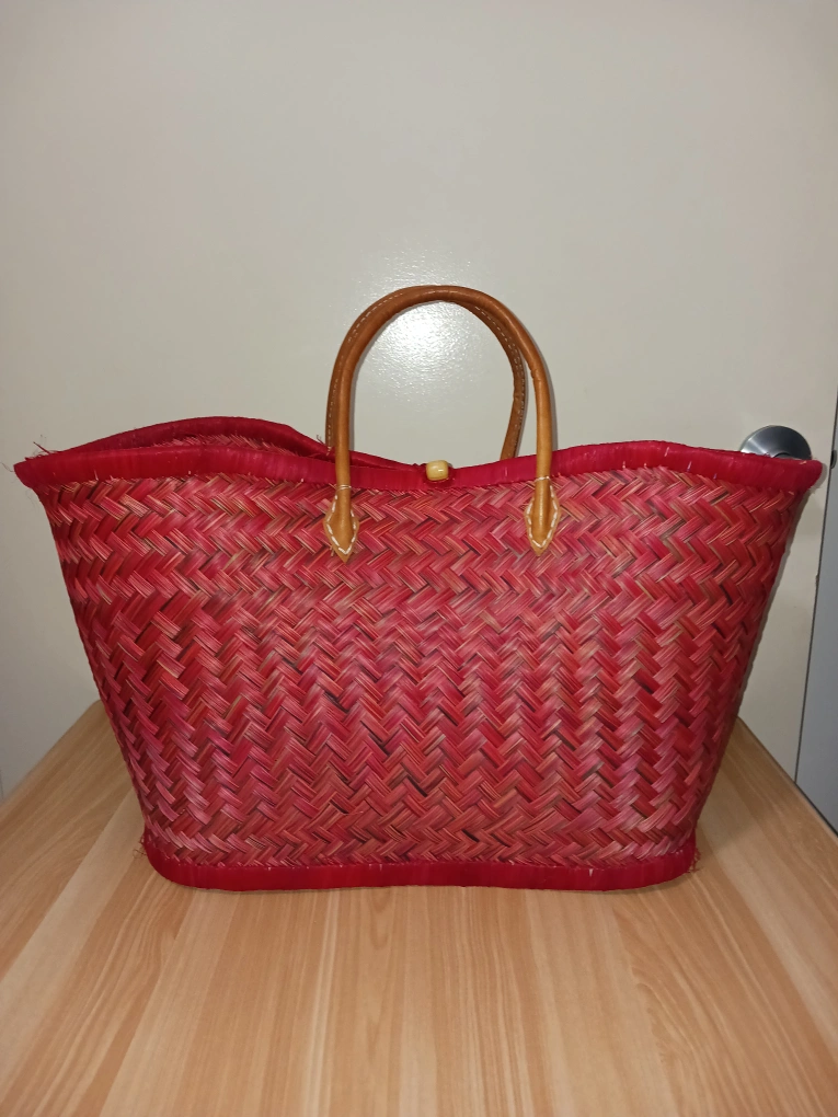 β¨ Stand out with this vibrant, handwoven red tote bag featuring strong leather handles! Lightweight, spacious, and perfect for everyday use or travel. Crafted with care and in excellent condition β no major flaws!