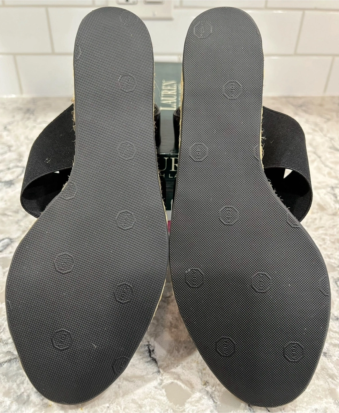 Ralph Lauren Womens Black Espadrille Wedge Sandals