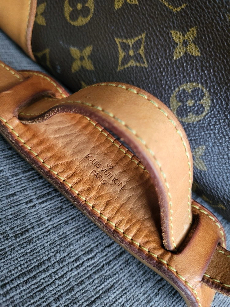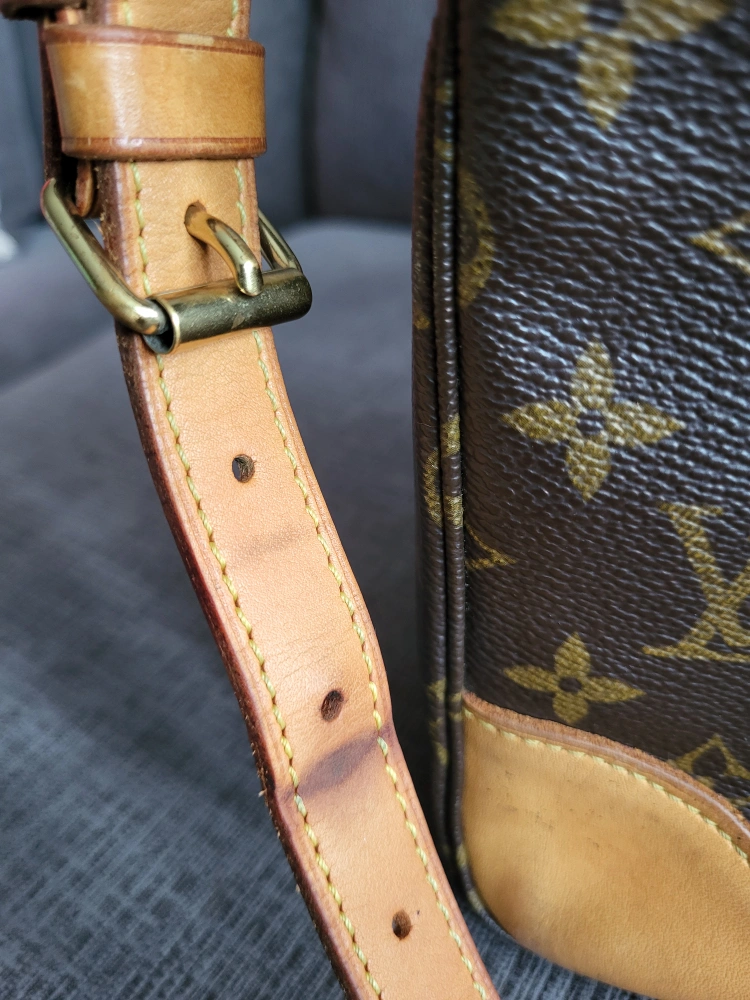 Strap and base corners - Medium light patina, no cracks and some stains