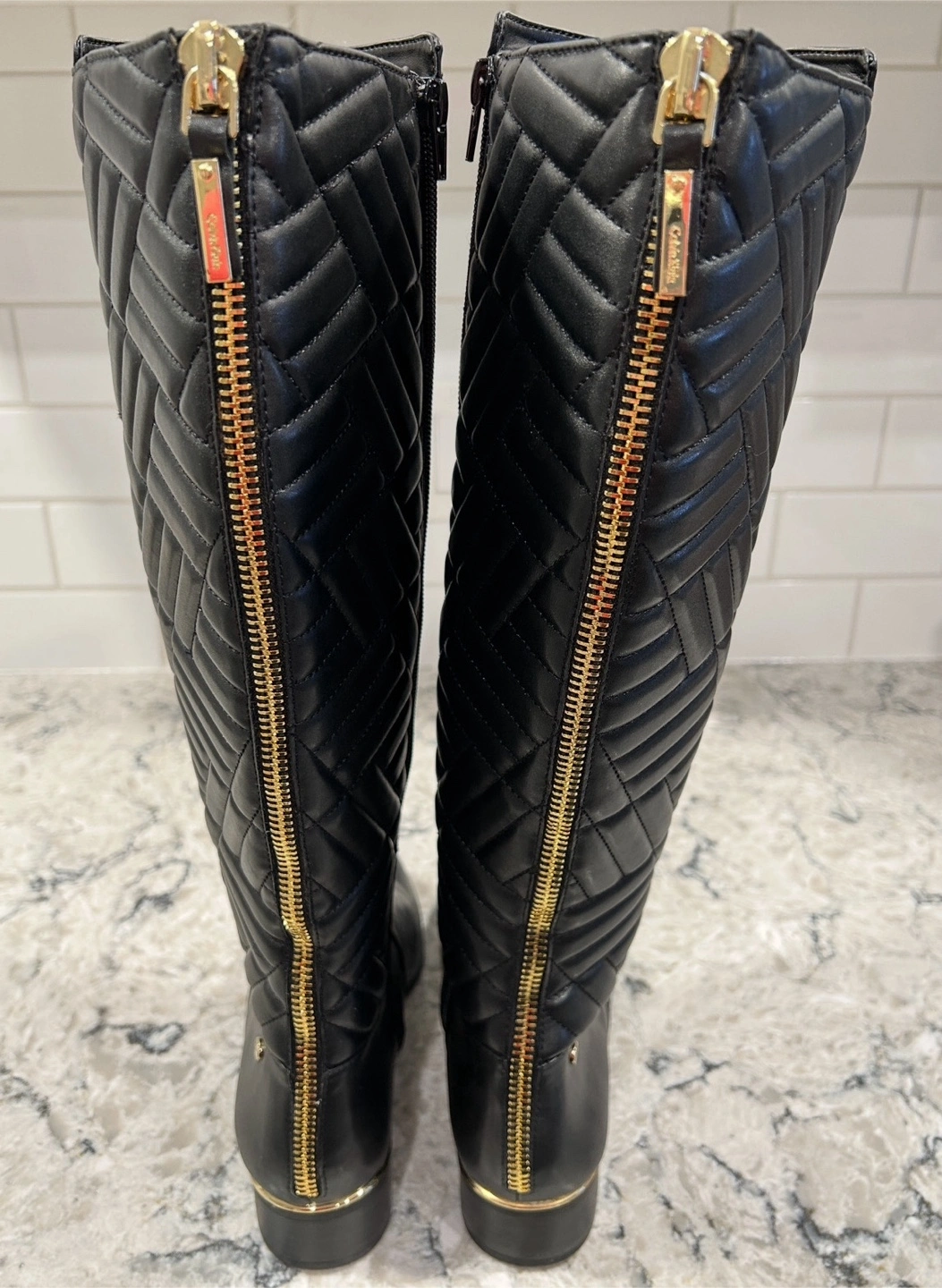 They feature a quilted design on the sides and a full-length zipper at the back. These boots are in great condition and would make a stylish addition to your wardrobe!