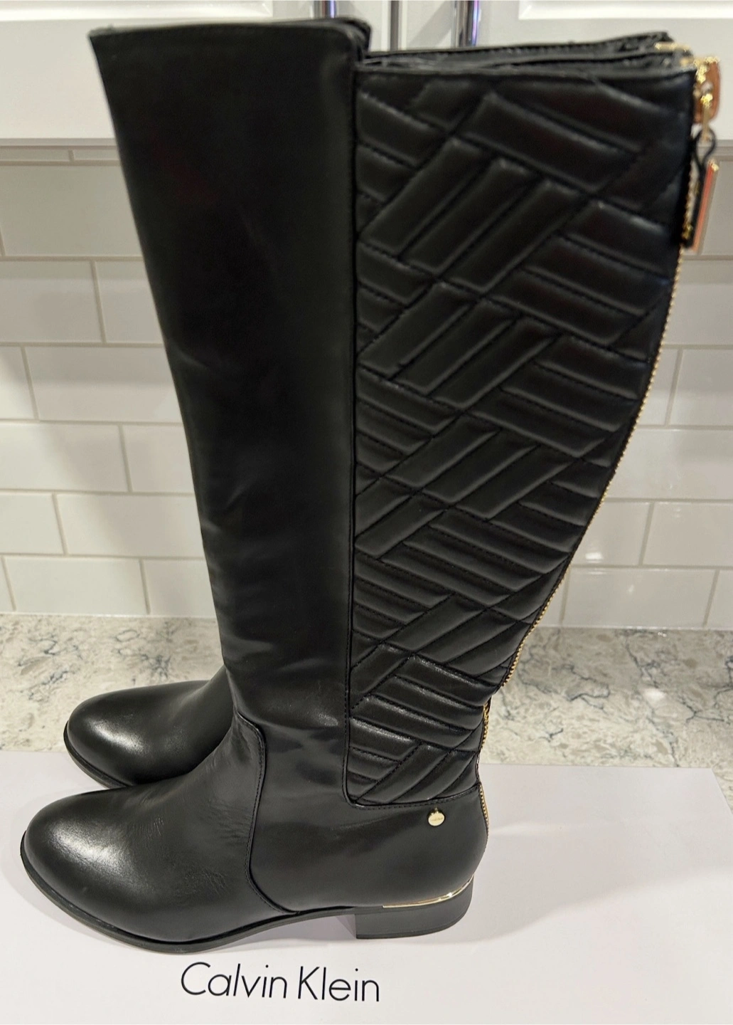 Calvin Klein Tall Rise Riding Style Zip Up Women’s Black Boots