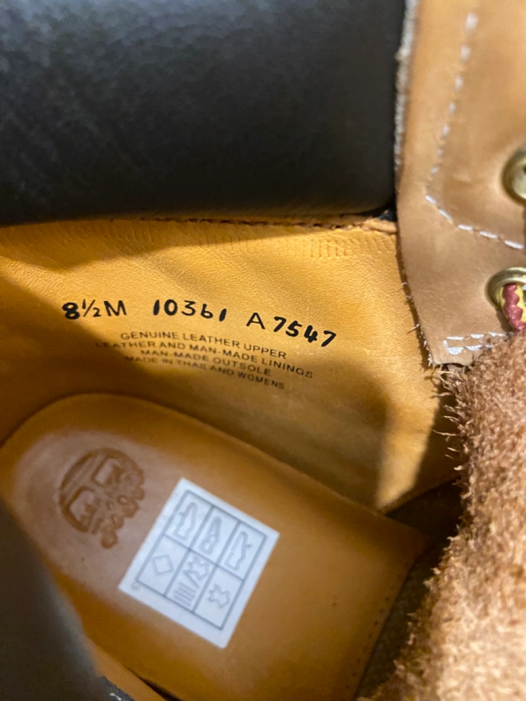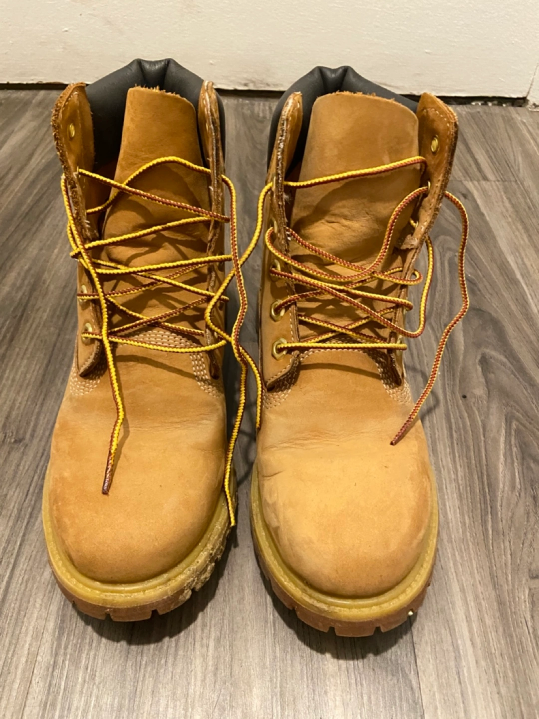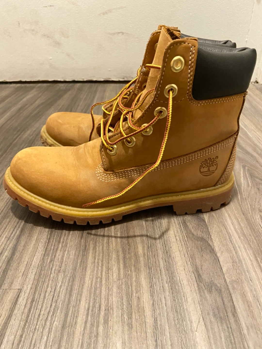 Selling a pair of Timberland boots in size 8.5. They're in good condition and ready for a new home! These are genuine leather upper and man-made linings.