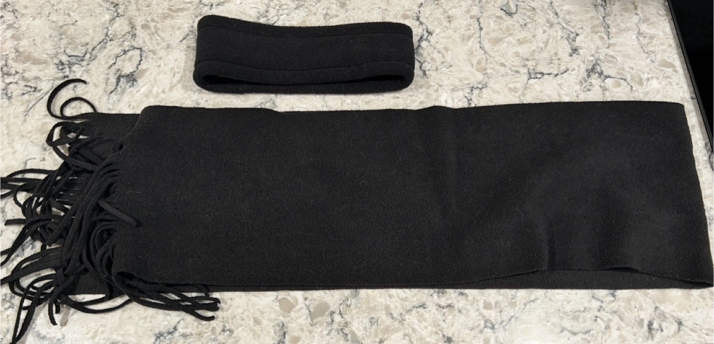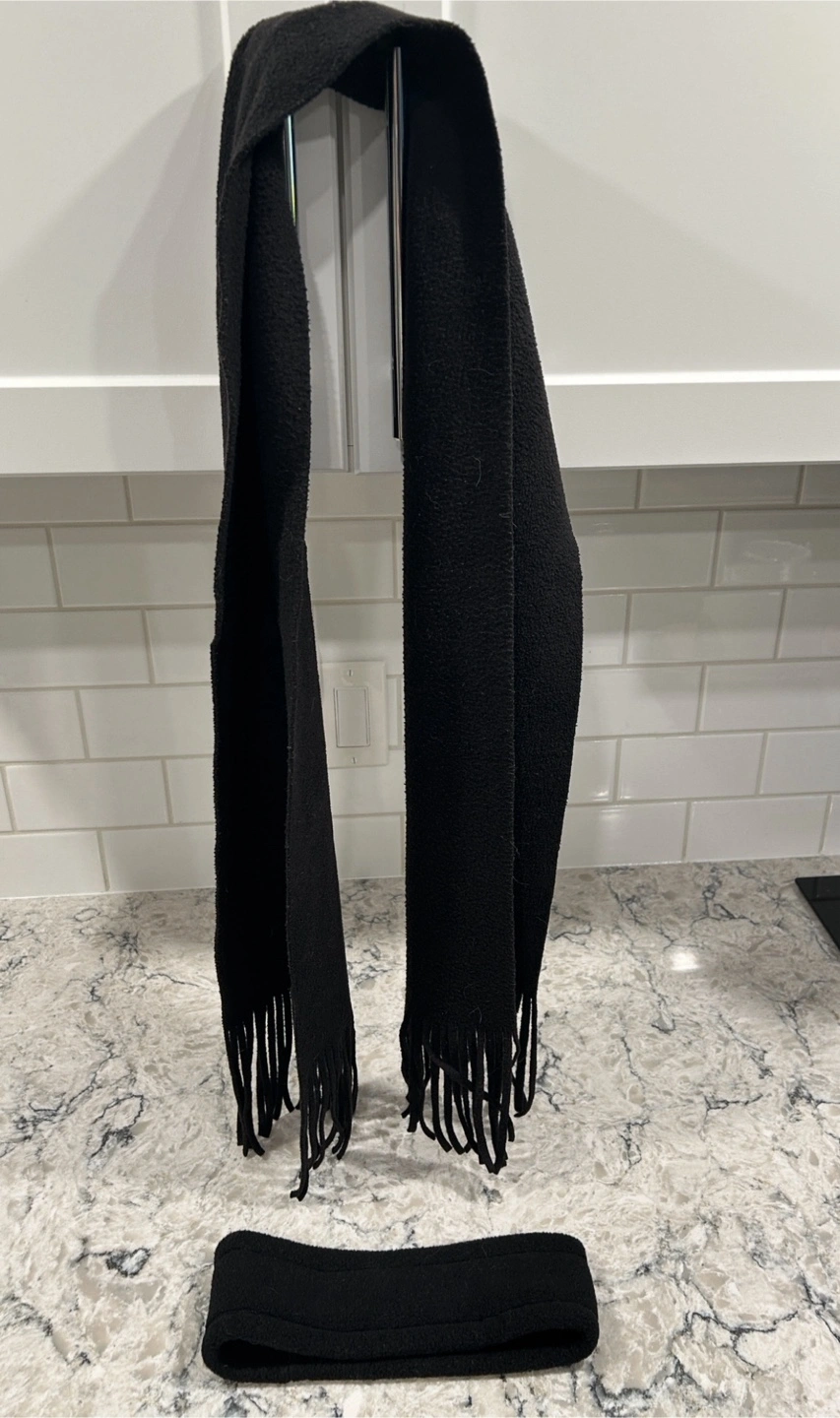 Cozy black fleece headband and matching scarf.