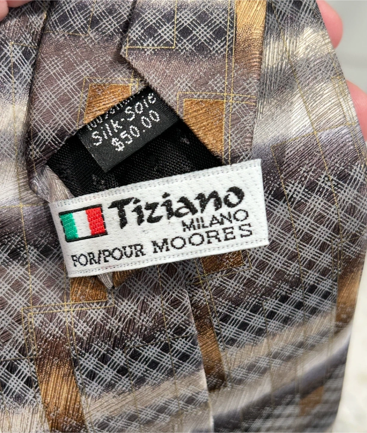 - A Tiziano Milano for Moores tie with grey and gold pattern