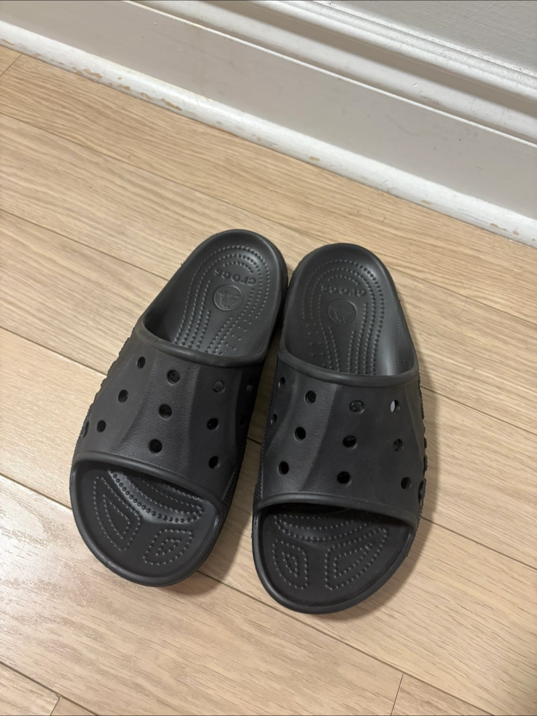Selling a pair of Crocs Classic Slides in black. They are a size man 10. (Woman 12). Great for indoor or outdoor wear!