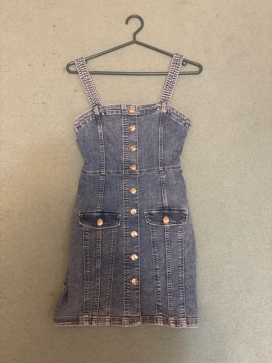 192Cute denim dress from H&M! It's a size XS and in new condition. Perfect for a casual day out or dressed up with some cute accessories.