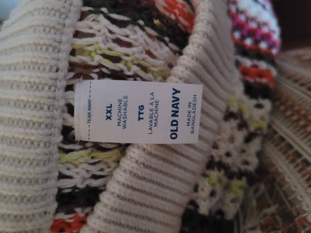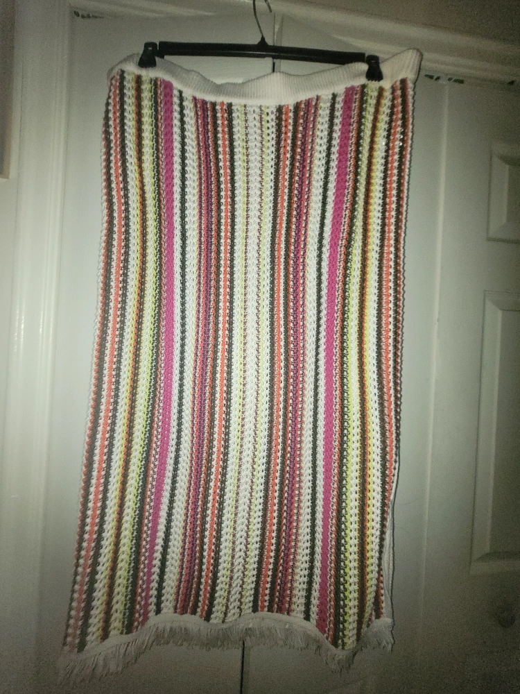 Selling an Old Navy open-stitch maxi skirt in plus size 2XL. It features a colourful striped pattern. its the perfectsummer cover up. looks knitted
