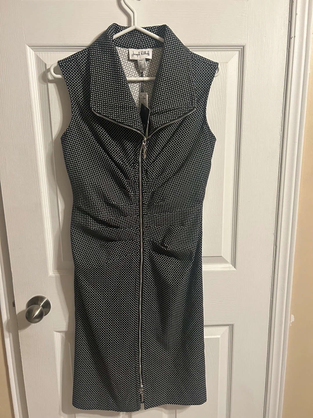 🇨🇦🇨🇦Joseph Ribkoff dress in a black and white pattern! It's a size 10 , Features a full-length zipper at the front, Perfect for any occasion!