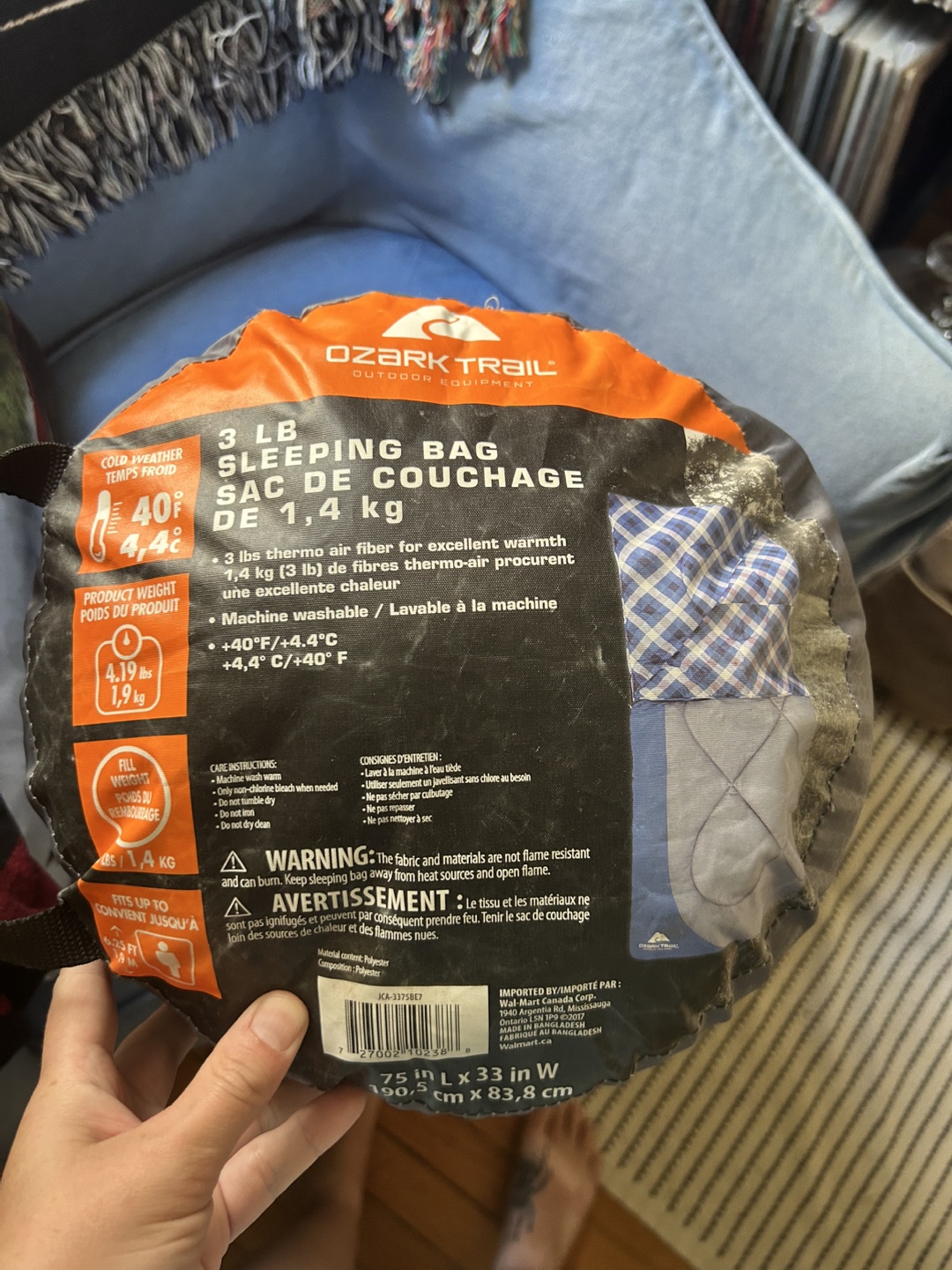1 / 11 / 1Buy & SellOzark Trail 3 LB Sleeping BagOzark Trail 3 LB Sleeping Bag$15Ozark Trail 3 lb sleeping bag for cold weather. It's machine washable and fits up to 6.25 ft. Smoke free home. Pickup: Jameson and King West No FrillsConditionGoodWHERE TO MEETNo FrillsView MapSELLERverifiedmegRoncesvalles34229 reviews0 chats·0 favorites·10 viewsSEND CHAT TO SELLERHi meg! I’m interested in your listing.Hi meg! I’m interested in your listing.Get the Karrot app to chatSign In to chat