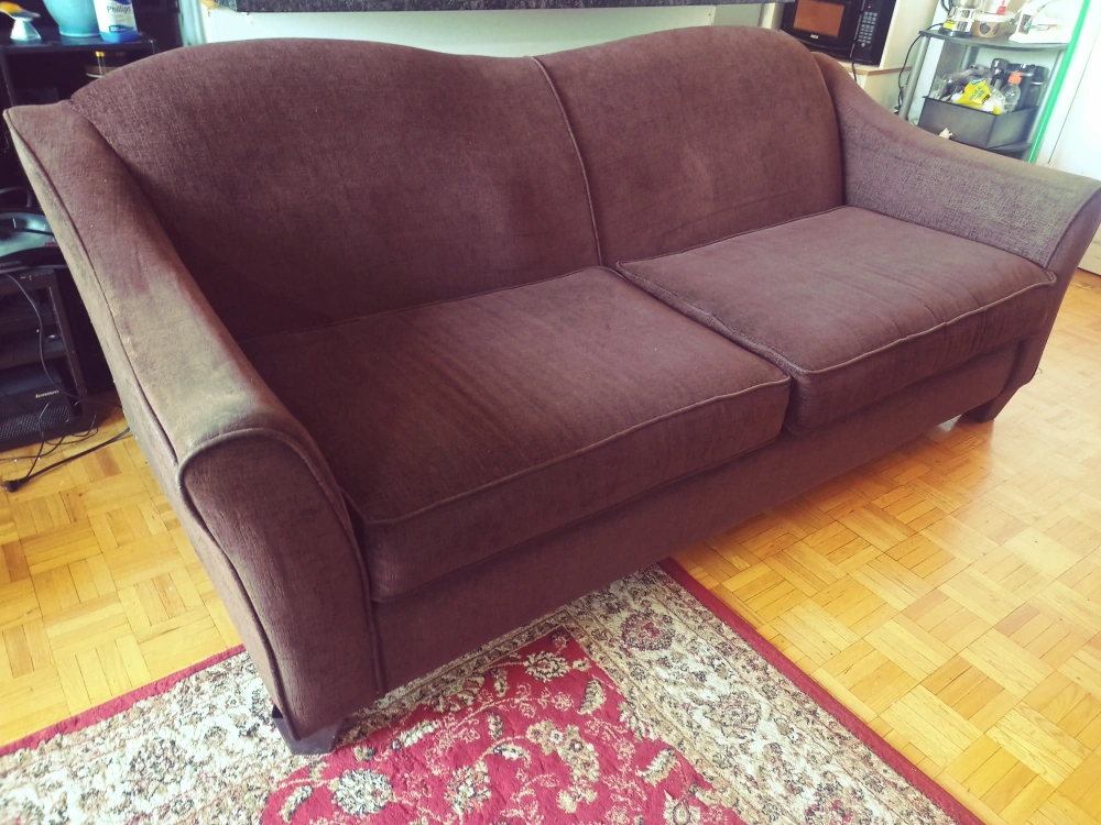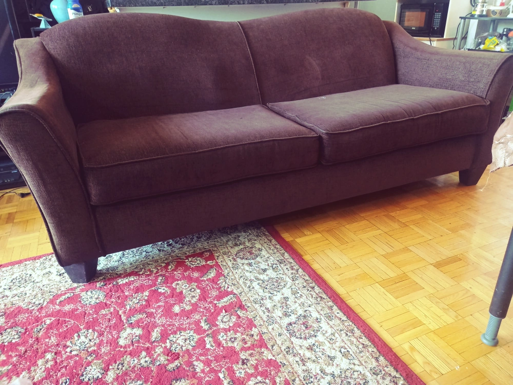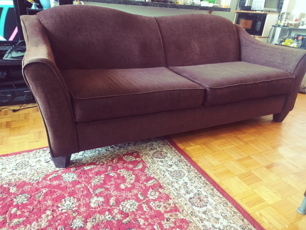 Selling a comfy big brown sofa, 6feet long 3 feet wide. has sofa cover. The colour is a nice neutral brown that will fit in with any decor.