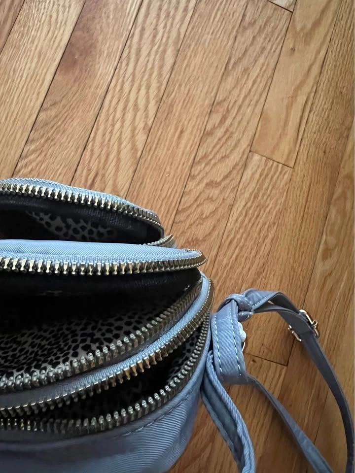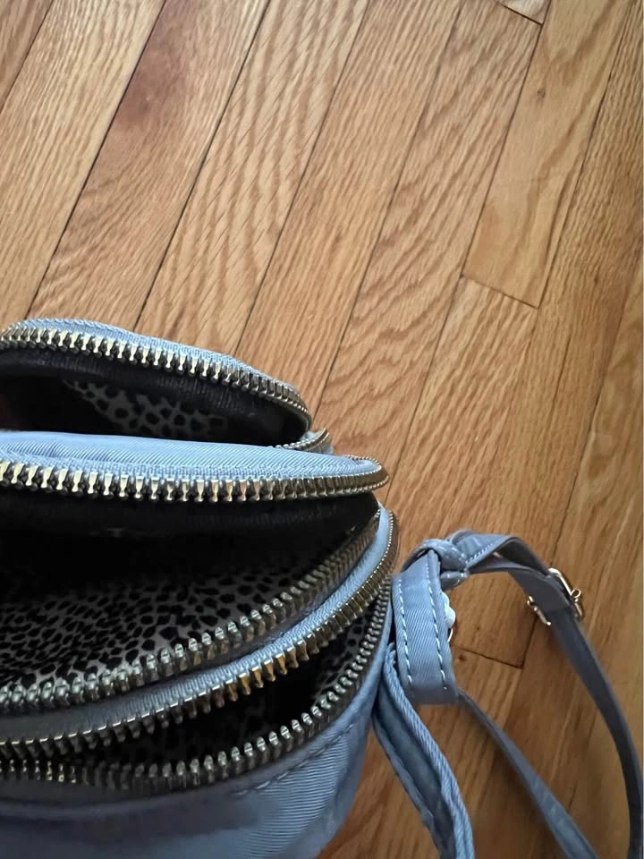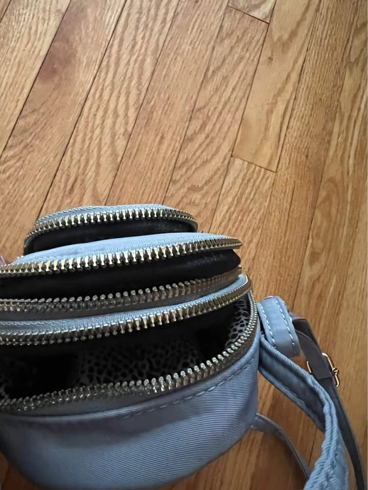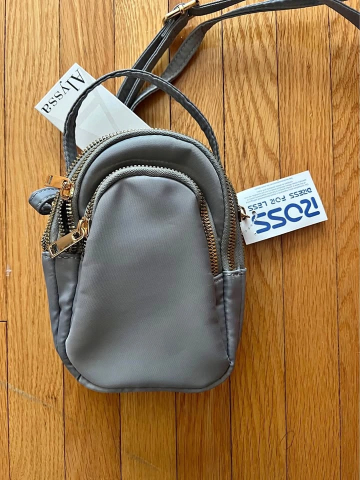 Brand new small ladies handbag. Vegan handbag design. It has three pouches and an adjustable strap. Great for when you want something small that you can just throw over your shoulder or across your body. Gray and colour and the material feels waterproof. Item comes from a pet and smoke free home. Porch union/401/Pickering for pick up