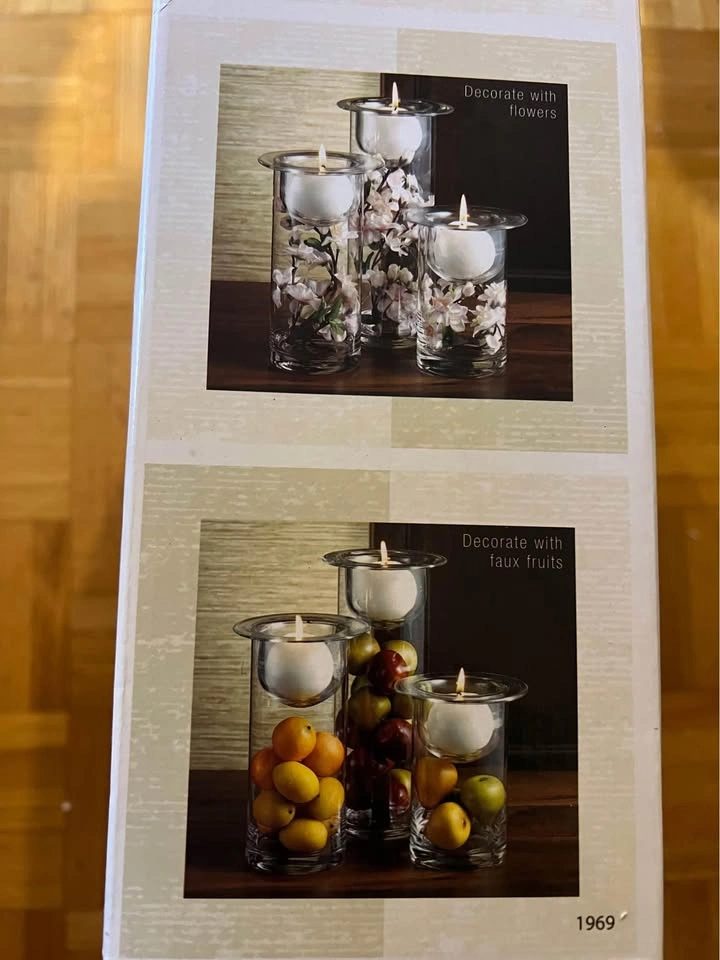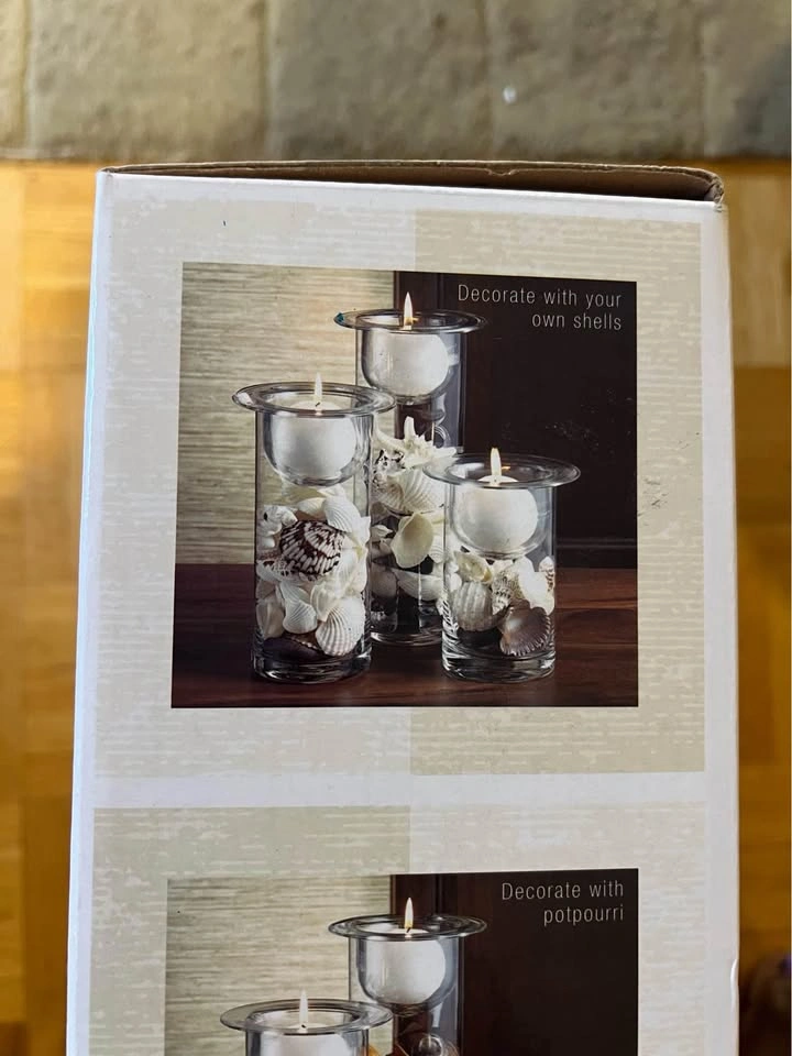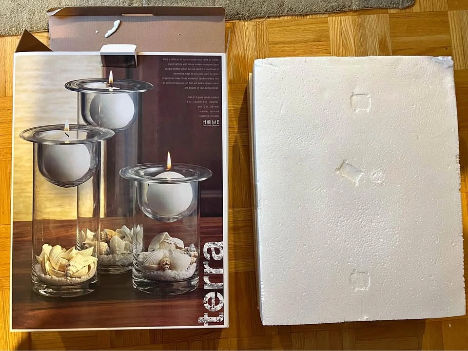 Brand new set of three beautiful candleholders. Terra Cotta brand. The candleholders can also hold other other items as noted in the pictures. Item comes from a pet and smoke-free home. Port union/401 for pick up.