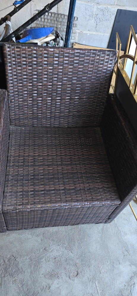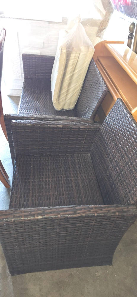 Selling a wicker outdoor patio furniture set! It's in great condition and perfect for enjoying the summer weather. The set includes chairs and cushions.