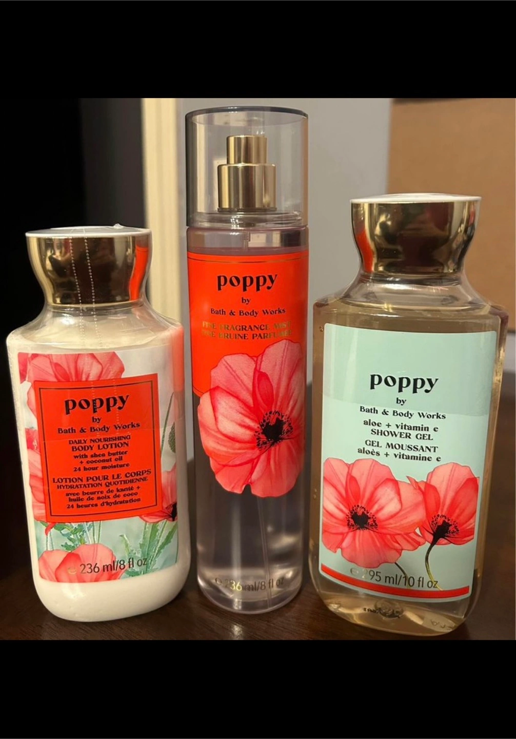 Selling a set of Bath & Body Works Poppy scented products. Includes: