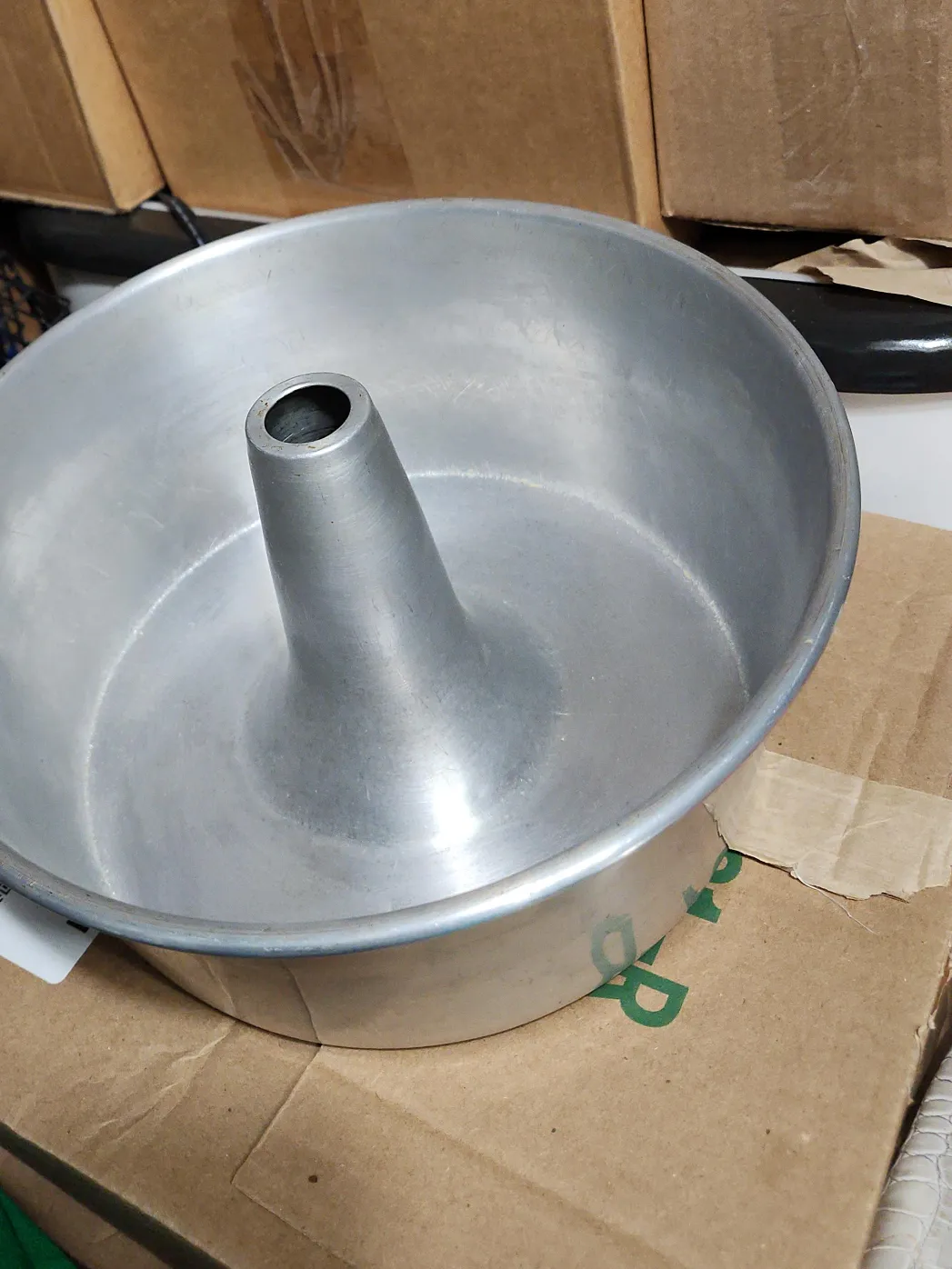 Selling a used angel food cake pan. It's about 10 inches in diameter 4"H has some signs of use, but is still in excellent condition like new for baking up delicious treats! price firm only cash only pickup no delivery. meet up 801 O'Connor drive outside TD Canada Trust bank door. East York