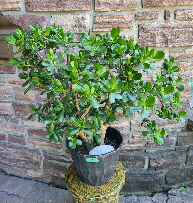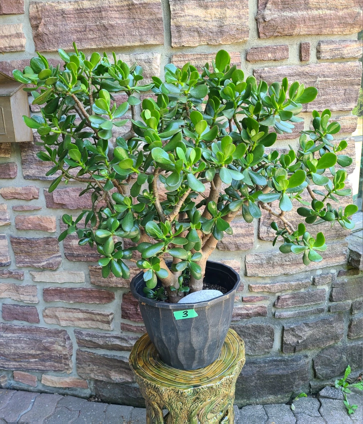 Large jade plant 2.5 feet tall. Its height and tall trunks and branches give this plant a tree-like appearance. Very well-cared for and maintained for many years.