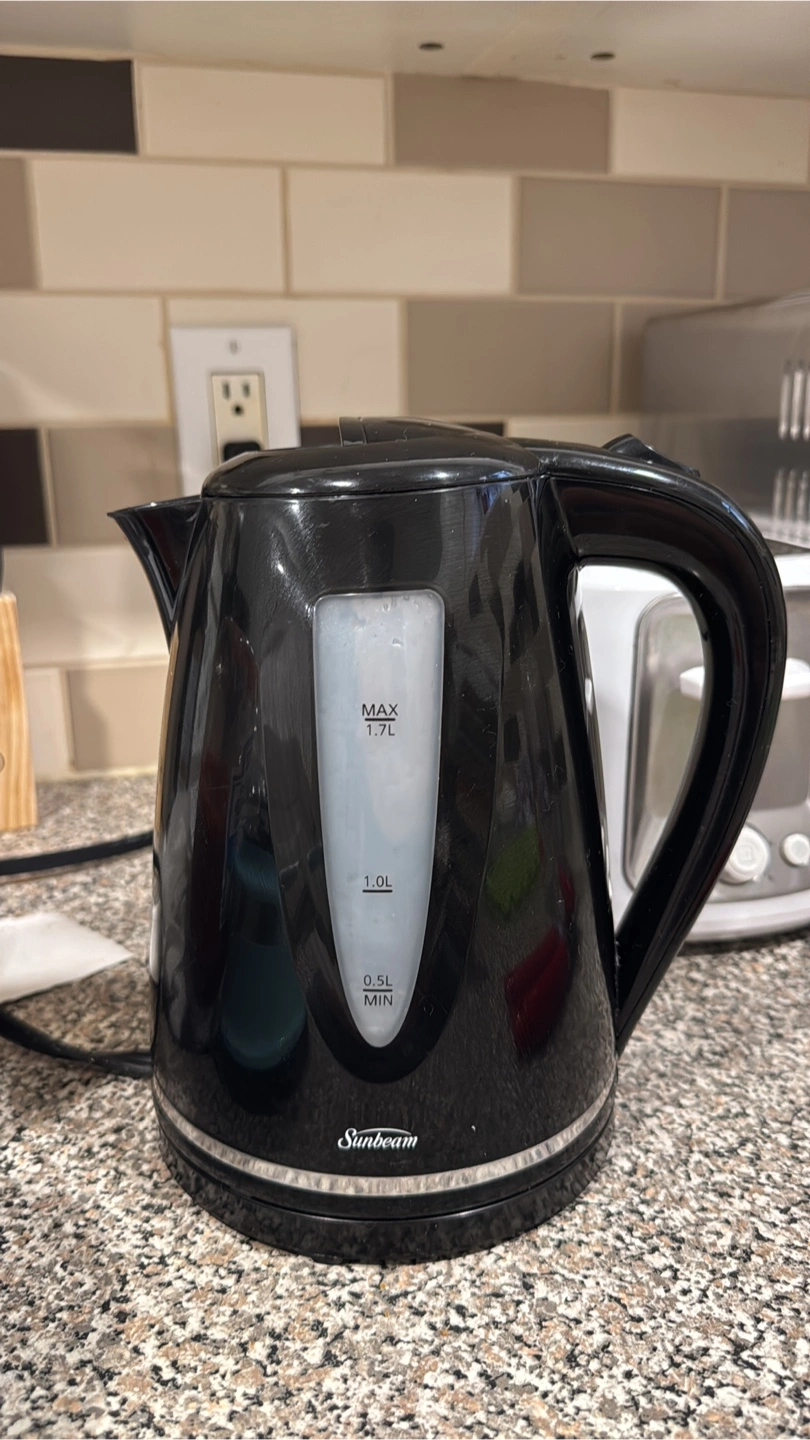 Selling a Sunbeam electric kettle in black! It has a 1.7L capacity, perfect for making tea or coffee for a few people. It's in great condition and heats up water quickly