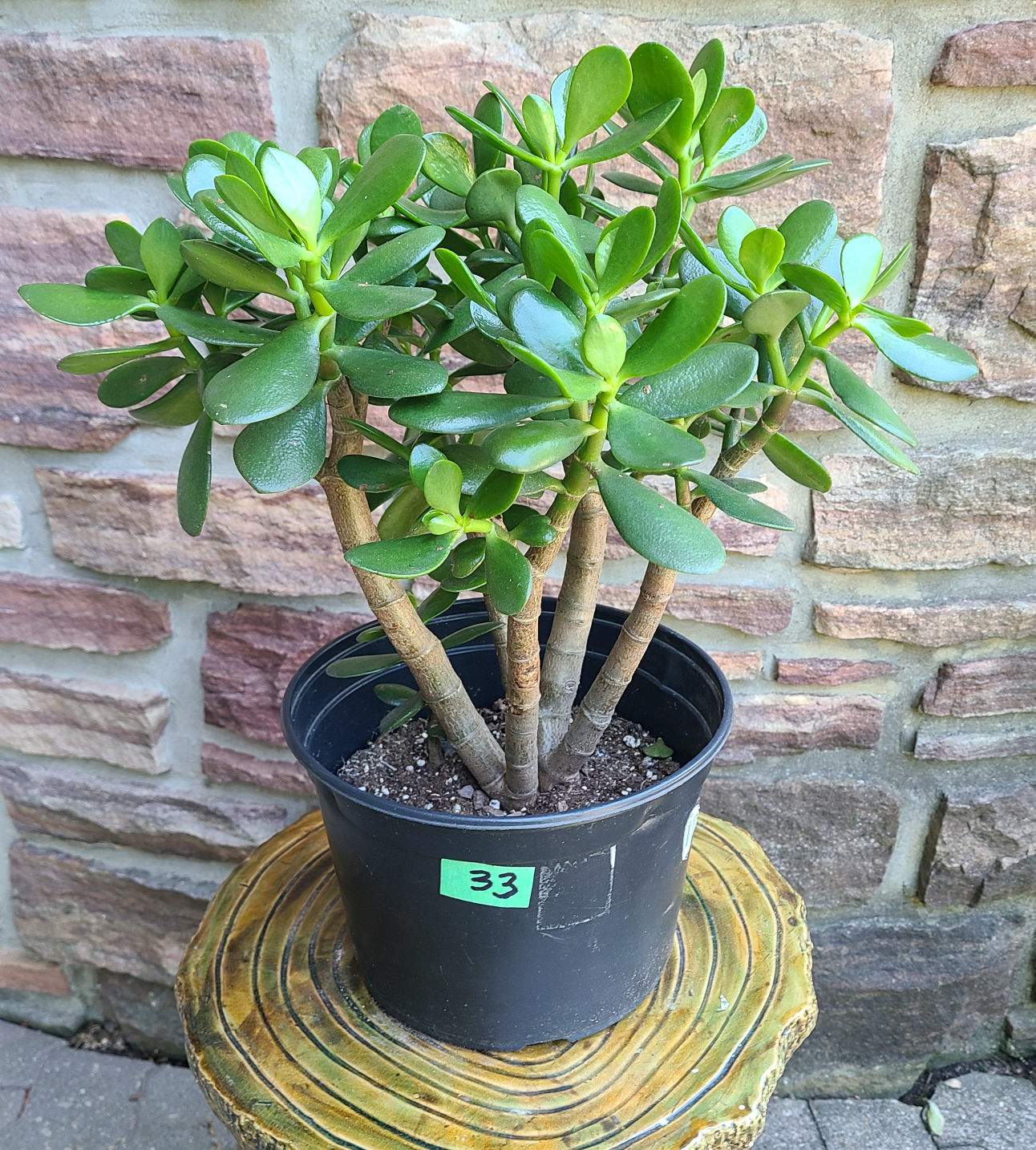 Healthy jade plant 15 inches tall. Long beautiful upward stems which will grow for many years. Perfect for smaller spaces.