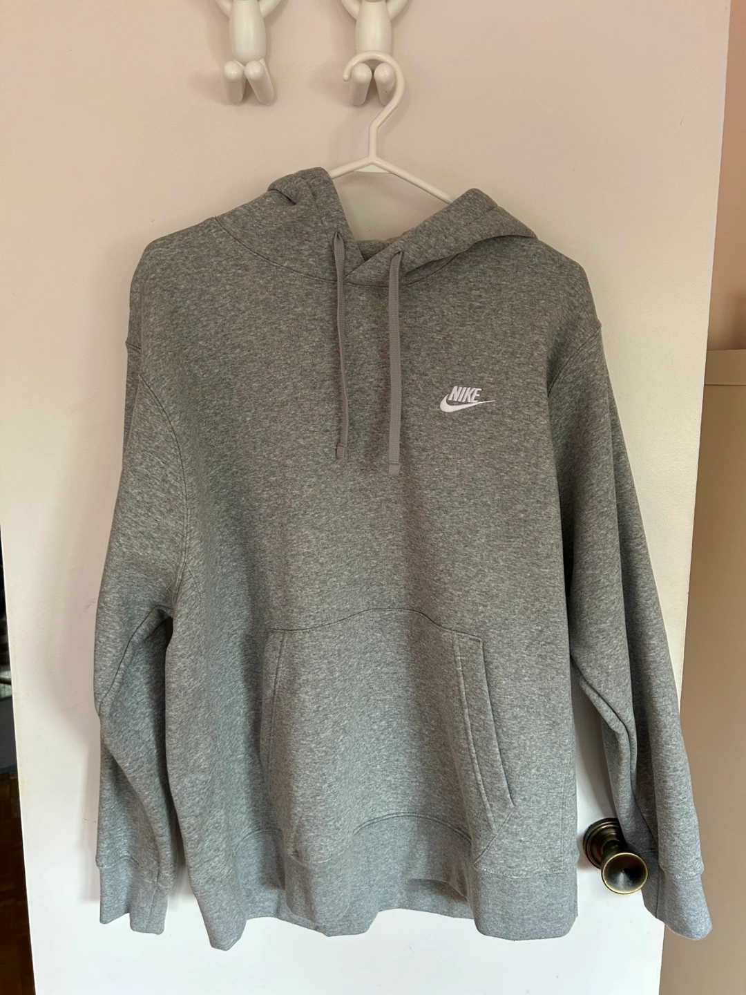 Selling a gently used Nike hoodie in a versatile grey colour. It's a size large (men’s) and in great condition. Perfect for layering or just lounging around. I took the tag off, and only wore once to try on.
