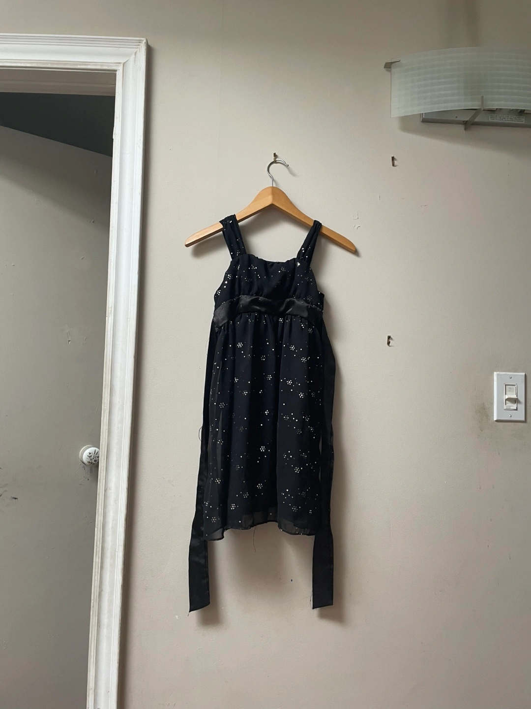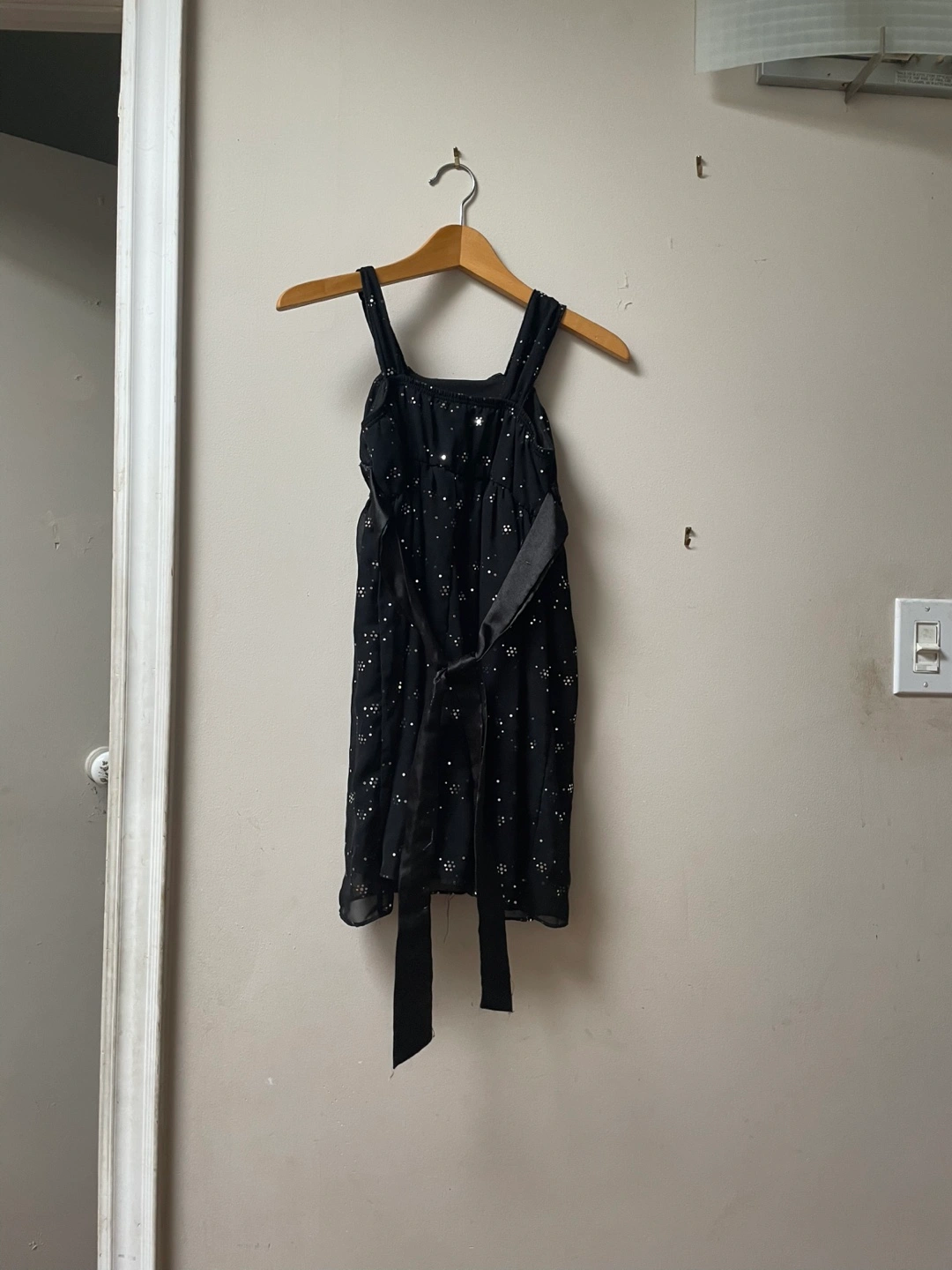 This is a cute black dress from Newberry in size 10! It's made of 100% polyester and would be great for a party or special occasion. The dress has a stylish design and is in great condition!