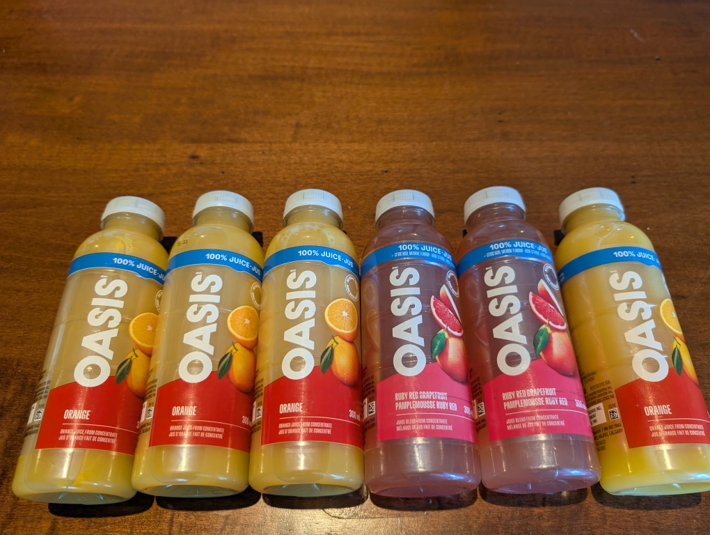 Got a selection of Oasis juice bottles: Orange and ruby red grapefruit concentrate. $1 per unit or grab the 6 for $5 π§‘