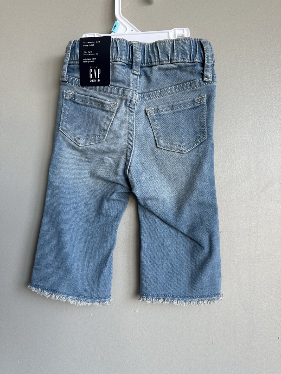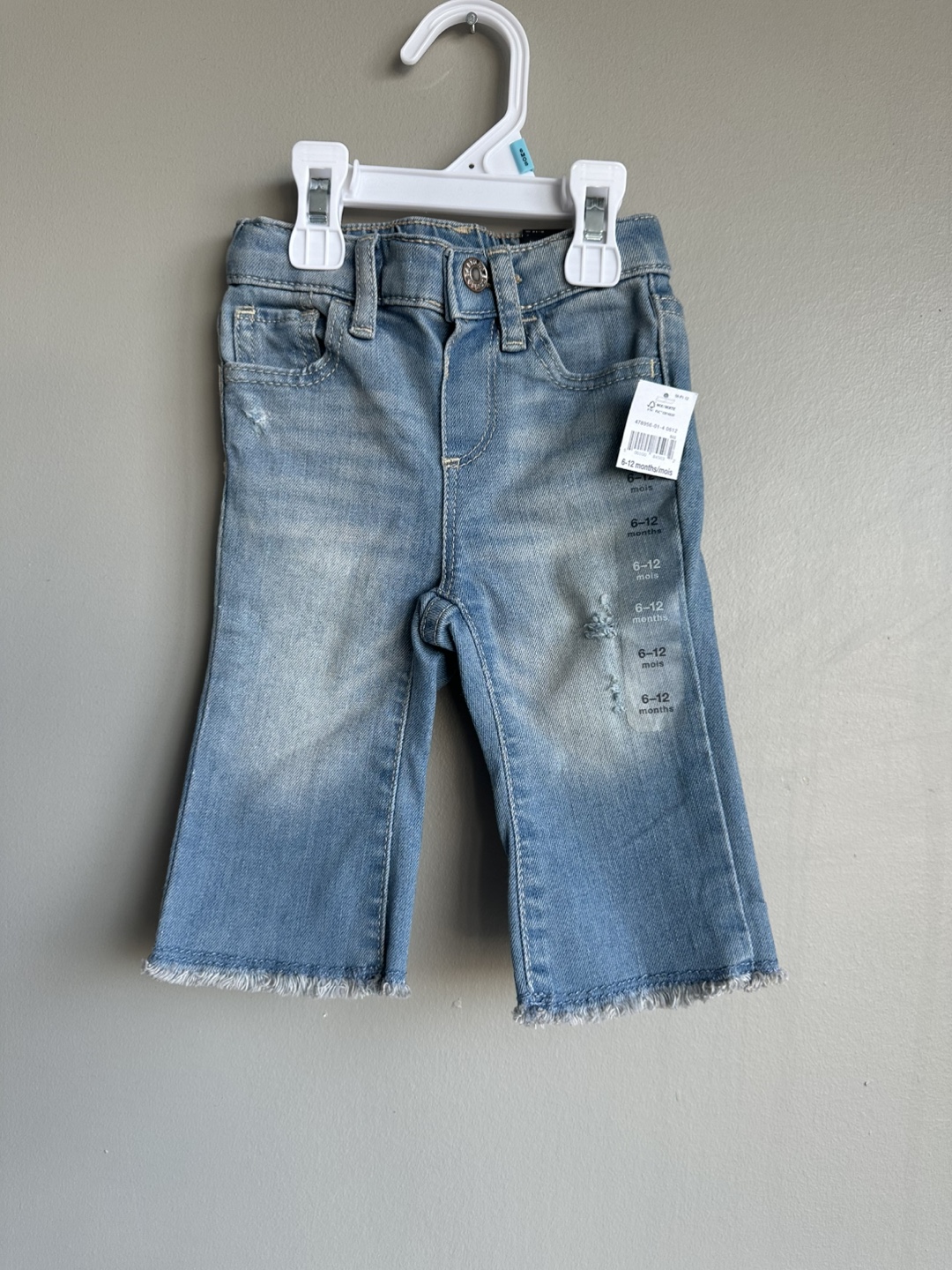 These brand new Gap denim jeans are perfect for your little one! They are size 6-12 months and made of 73% cotton, 26% polyester, and 1% spandex. Super cute and ready to wear!